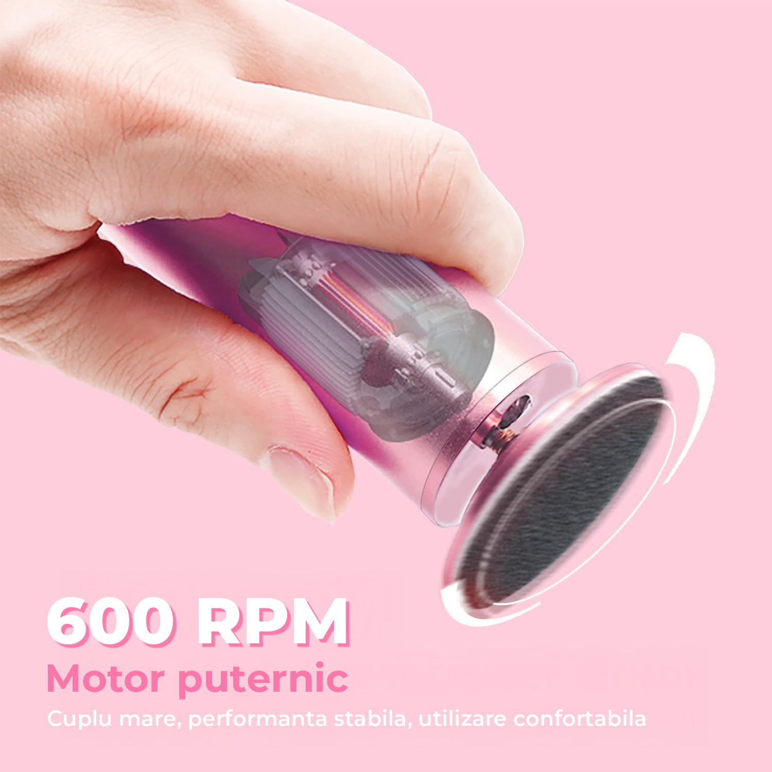 Dispozitivul este dotat cu viteză ajustabilă între 0 și 600 RPM, permițându-ți să personalizezi tratamentul în funcție de nevoile tale. Fie că ai pielea sensibilă sau zone mai dure care necesită exfoliere intensă, vei găsi setarea ideală pentru siguranță, eficiență și confort maxim.