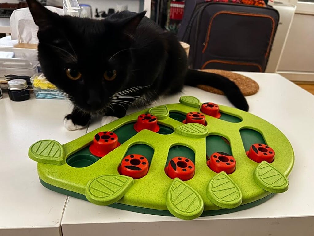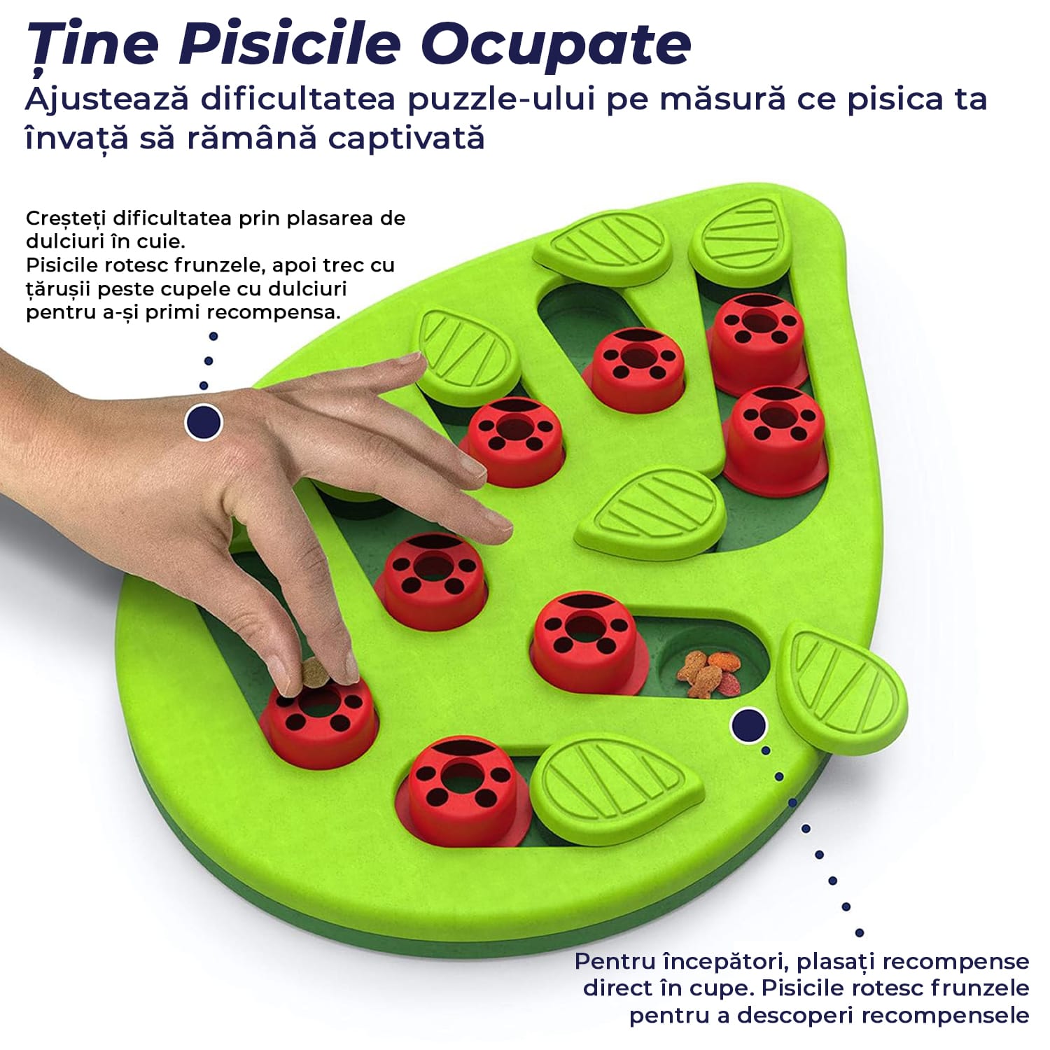 Tine Pisica Ocupata: Cu 16 compartimente ascunse pentru recompense, pisica ta va fi captivata si distrata.