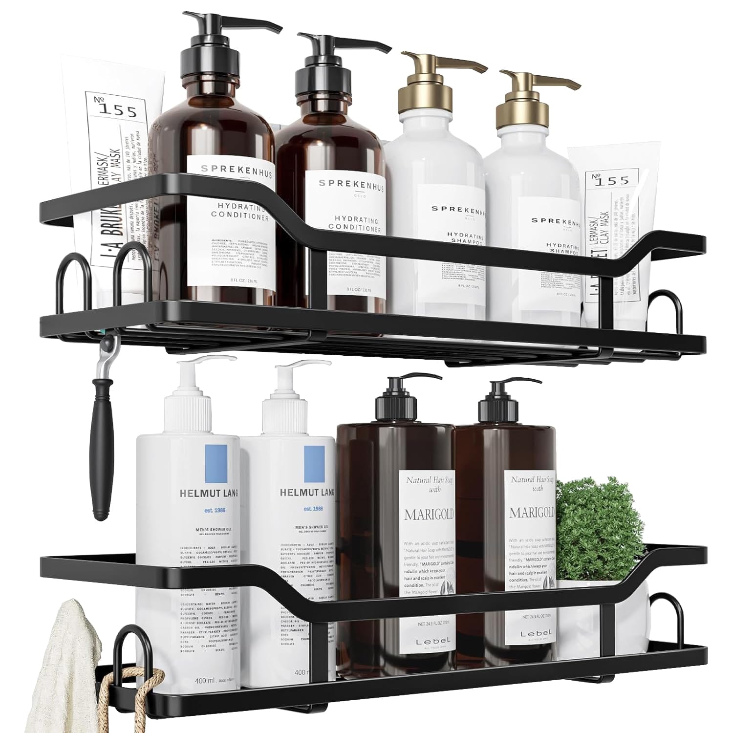 Raft pentru Duș și Organizator de Baie, Set de 2 Rafturi cu Prindere Adezivă, Ideal pentru Depozitare în Bucătărie și Baie, Negru
