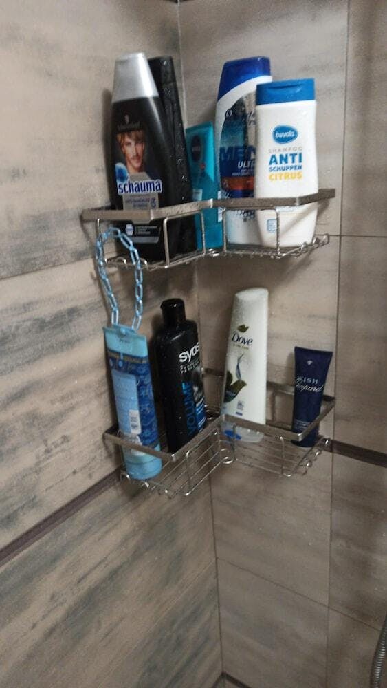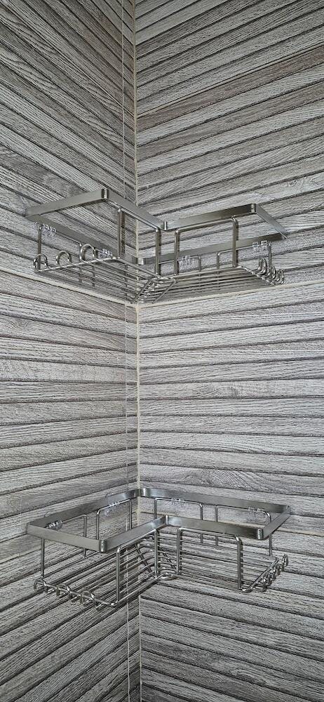 Design Compact in Formă de L: Acest suport de duș cu formă de “L” este proiectat pentru a utiliza eficient spațiul din colț. Datorită suprafeței mari a adezivului, capacitatea suportului este de pană la 18 kg, echivalentul greutății a 19 sticle de șampon/gel de duș/loțiune de corp de 1L fiecare. Notă: Acest suport se potrivește doar pentru colțuri la 90 de grade, nu este potrivit pentru colțuri rotunjite sau curbate.
