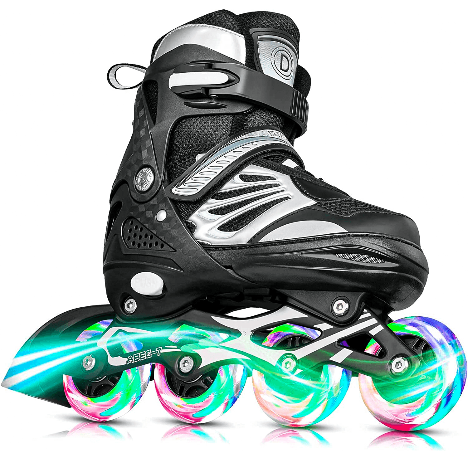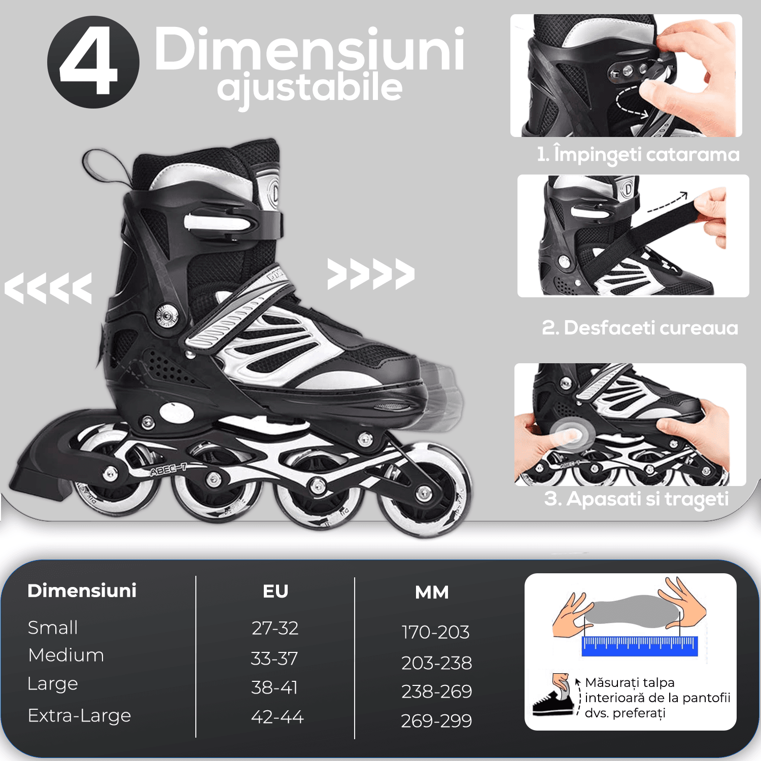 Role Reglabile S 27-32, Roți Luminoase Silicon, Rulmenți ABEC-7, Negru