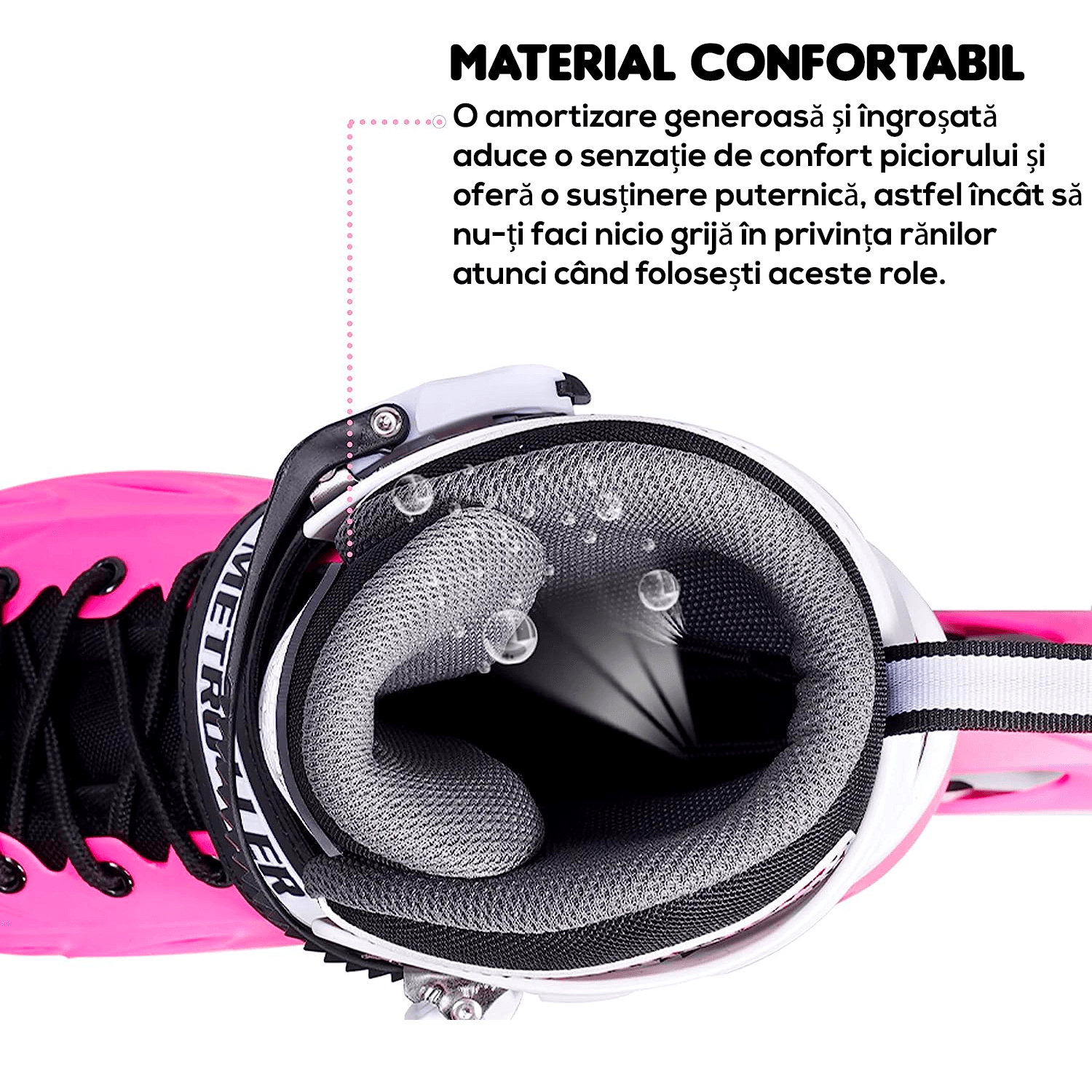 Role Reglabile M 33-36, Roți Luminoase Silicon, Rulmenți ABEC-7, Roz