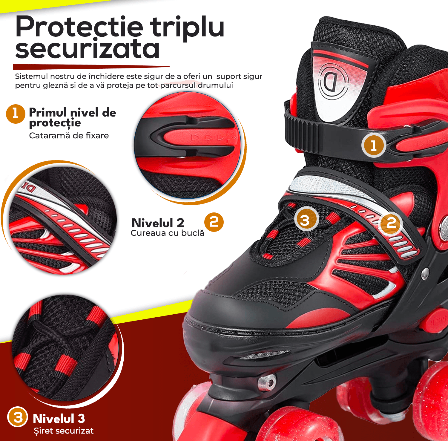 Role Reglabile M 33-37, Roți Luminoase Silicon, Rulmenți ABEC-7, Roșu/Negru
