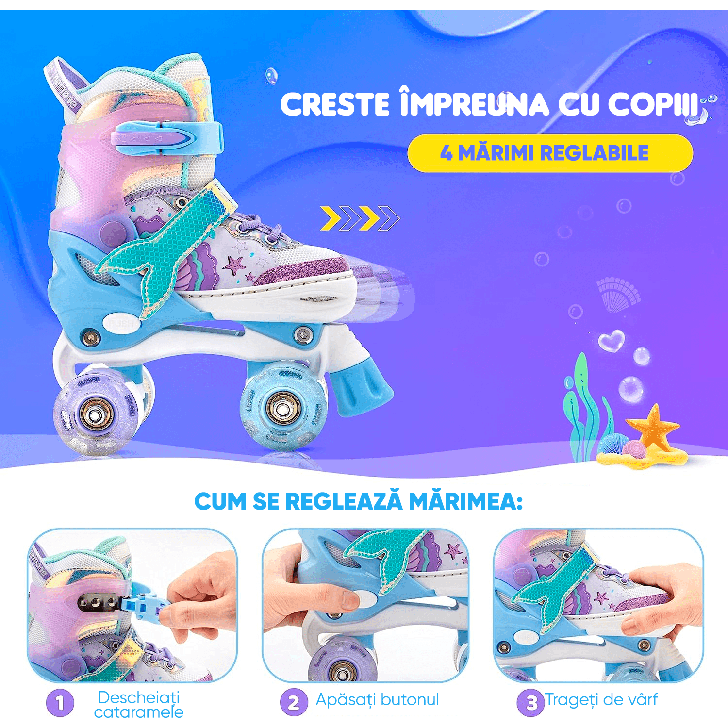 Role Reglabile M 32-37, Roți Luminoase Silicon, Rulmenți ABEC-7, Model Sirena