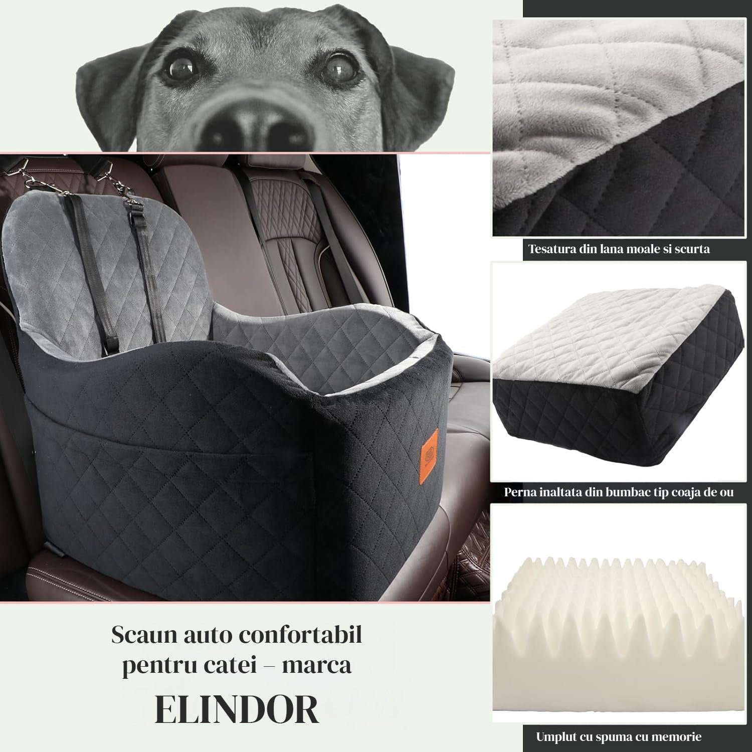 Scaun Auto Elindor® pentru Transport Animale, Caini si Pisici, Talie Mica si Medie, Protectie Scaun Sezut / Spatar, Ofera Protectie Pentru Bancheta Spate Masina Taxi/Ride Sharing, Impermeabila, Antialunecare, 48.3 x 48.3 48.3 cm, Negru