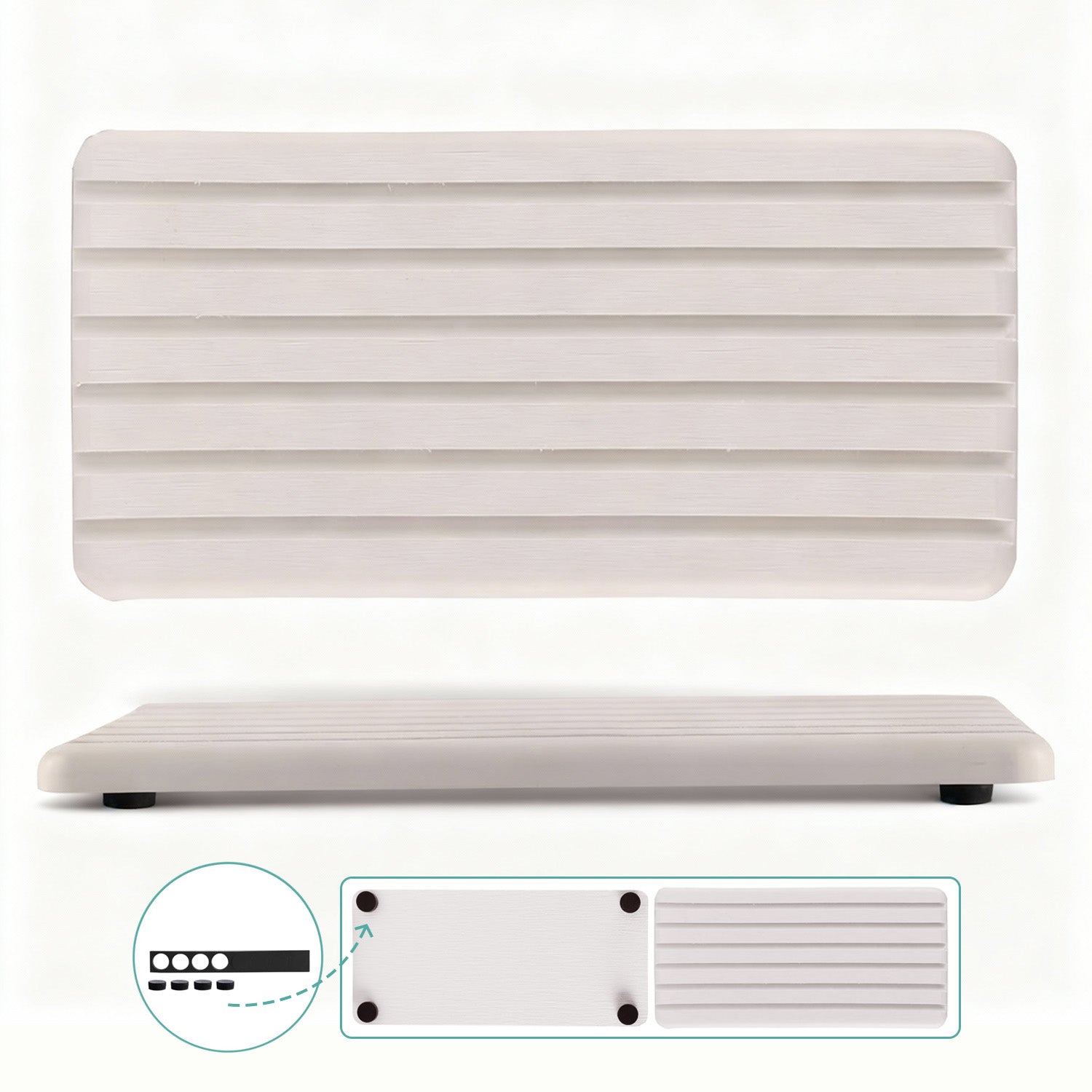 • Design cu șanțuri: liniile gravate accelerează absorbția și evaporarea apei, având și efect antiderapant.