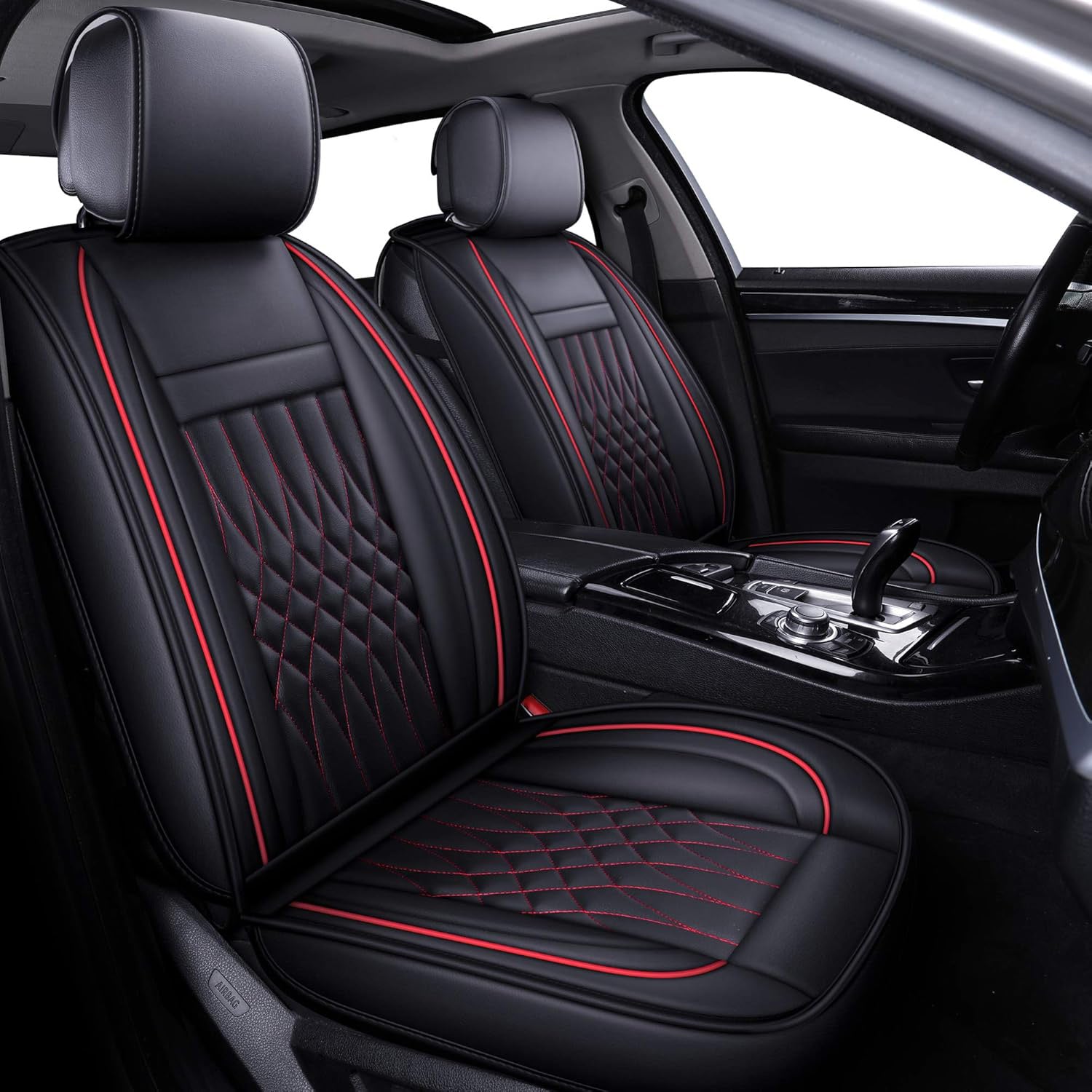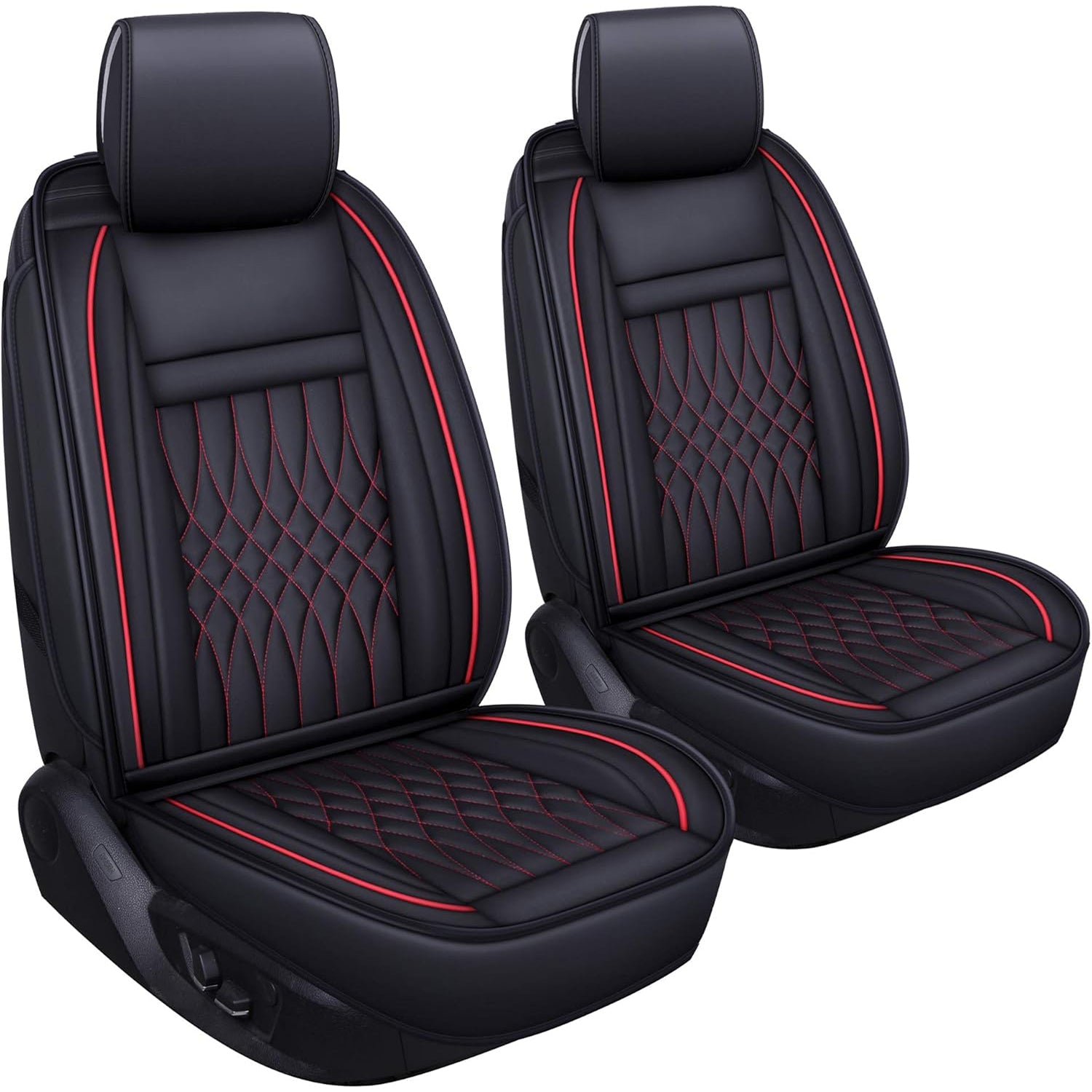 Set 2 Huse Scaune Auto Elindor®, Piele Ecologica, Impermeabile, Universale, Protectie Scaun Fata, Compatibile cu Masinile Sedan, SUV/Camionete, Accesorii Masina Interior, Negru/Rosu