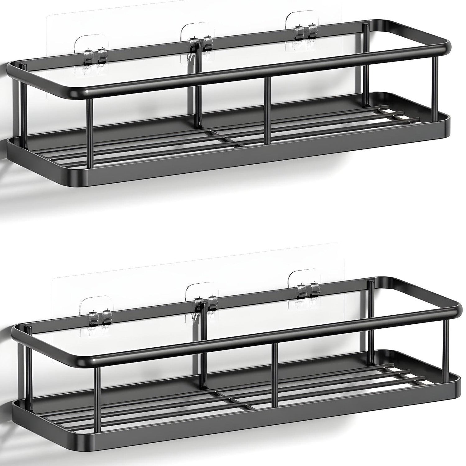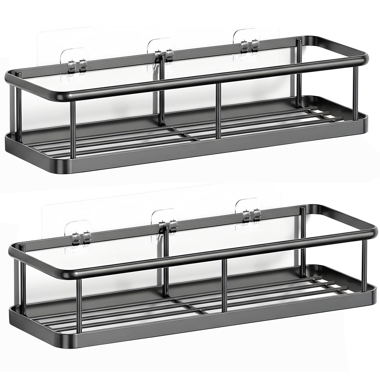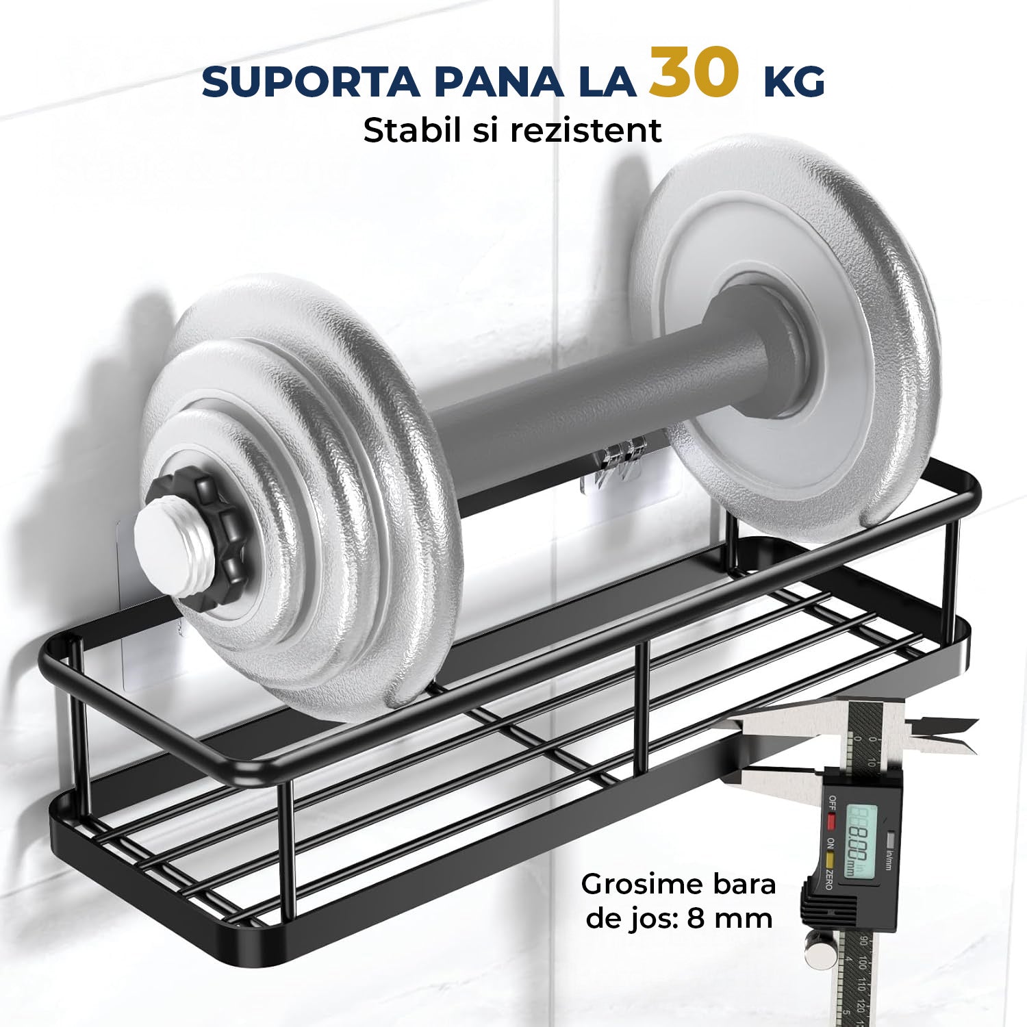Set 2 Rafturi de  Dus Adezive Elindor – Organizator Baie, fara Gaurire, Antirugina, Negru