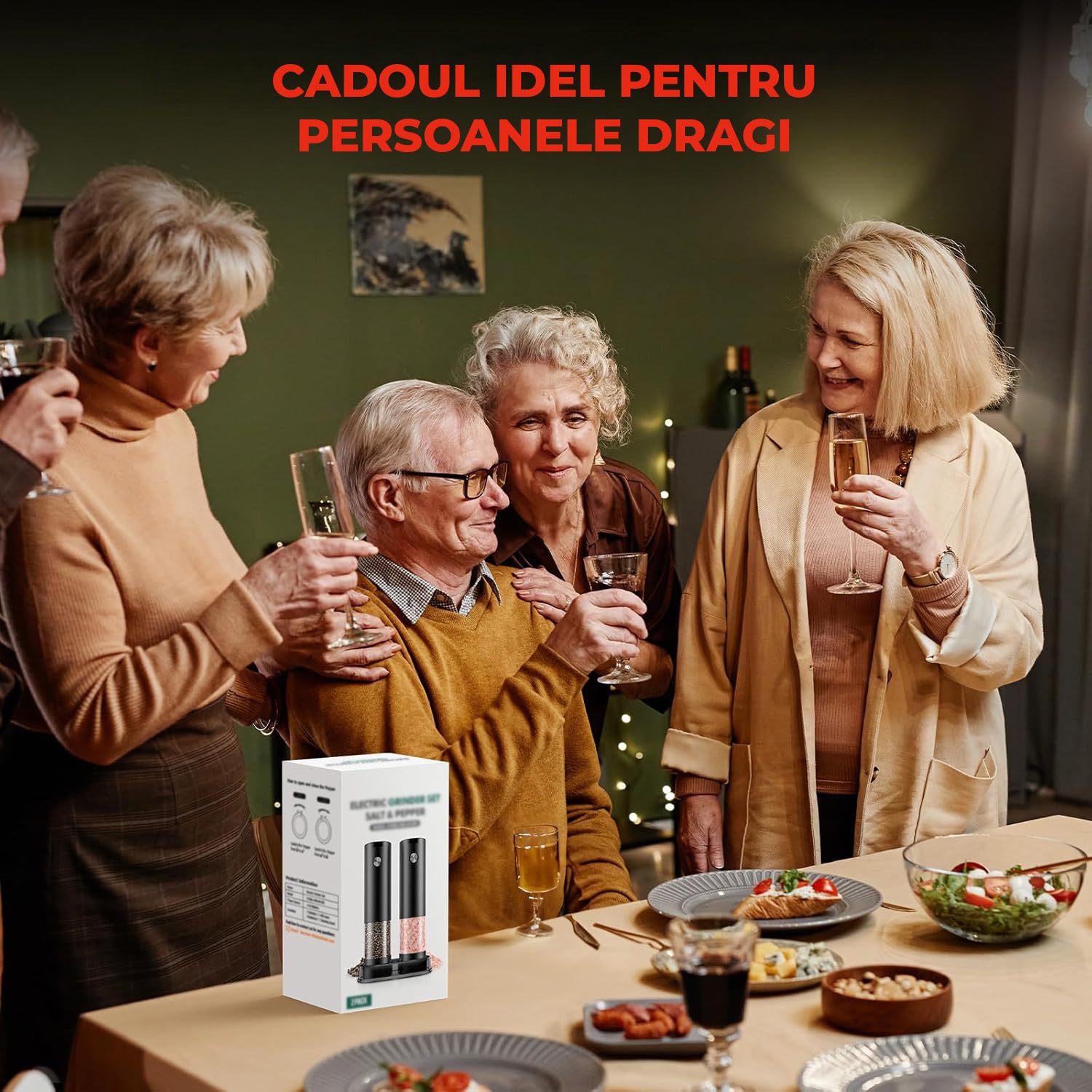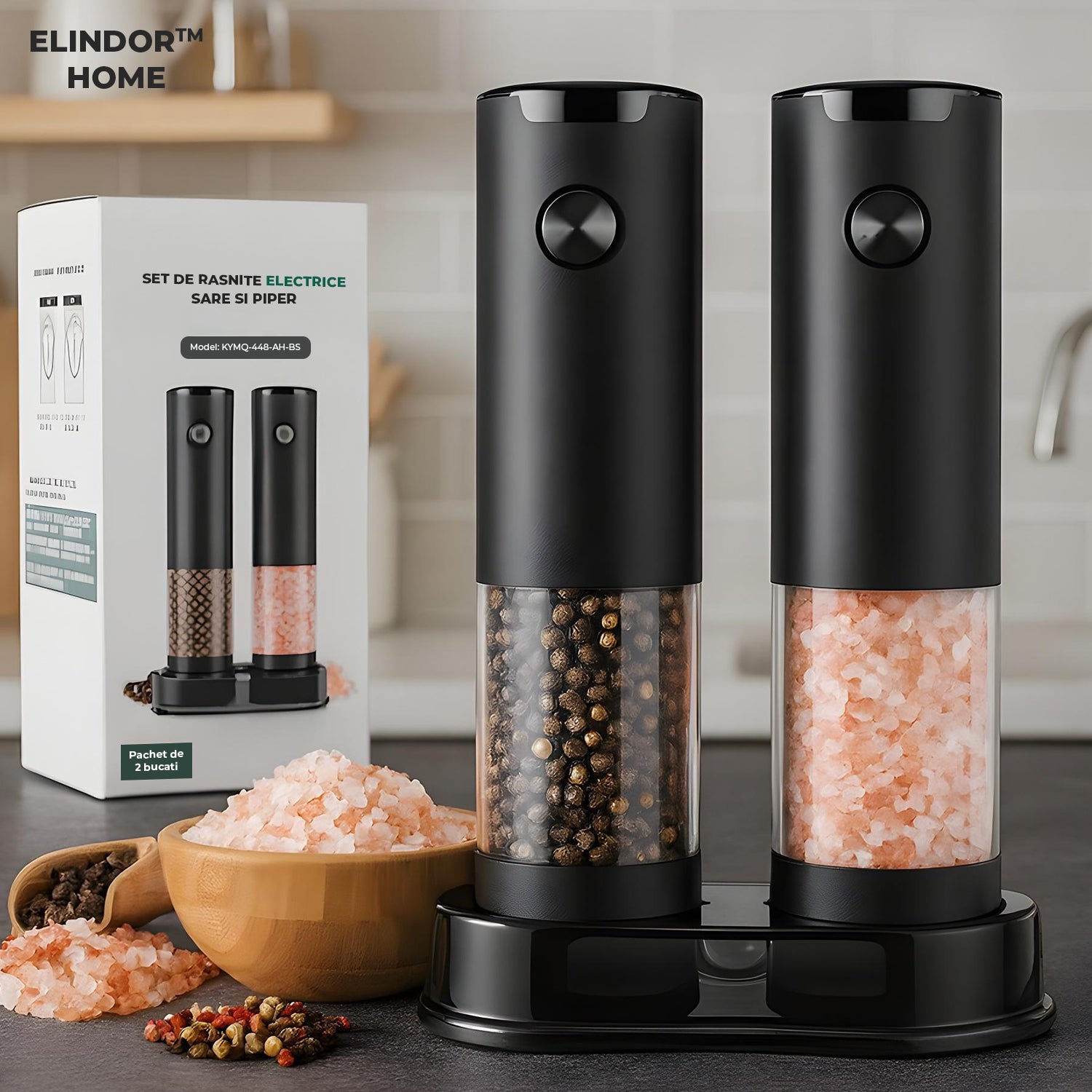 Elindor Set Electric de Râșnițe pentru Sare și Piper – Reglabil, LED Integrat, Lame Ceramice Rezistente și Capacitate Mare