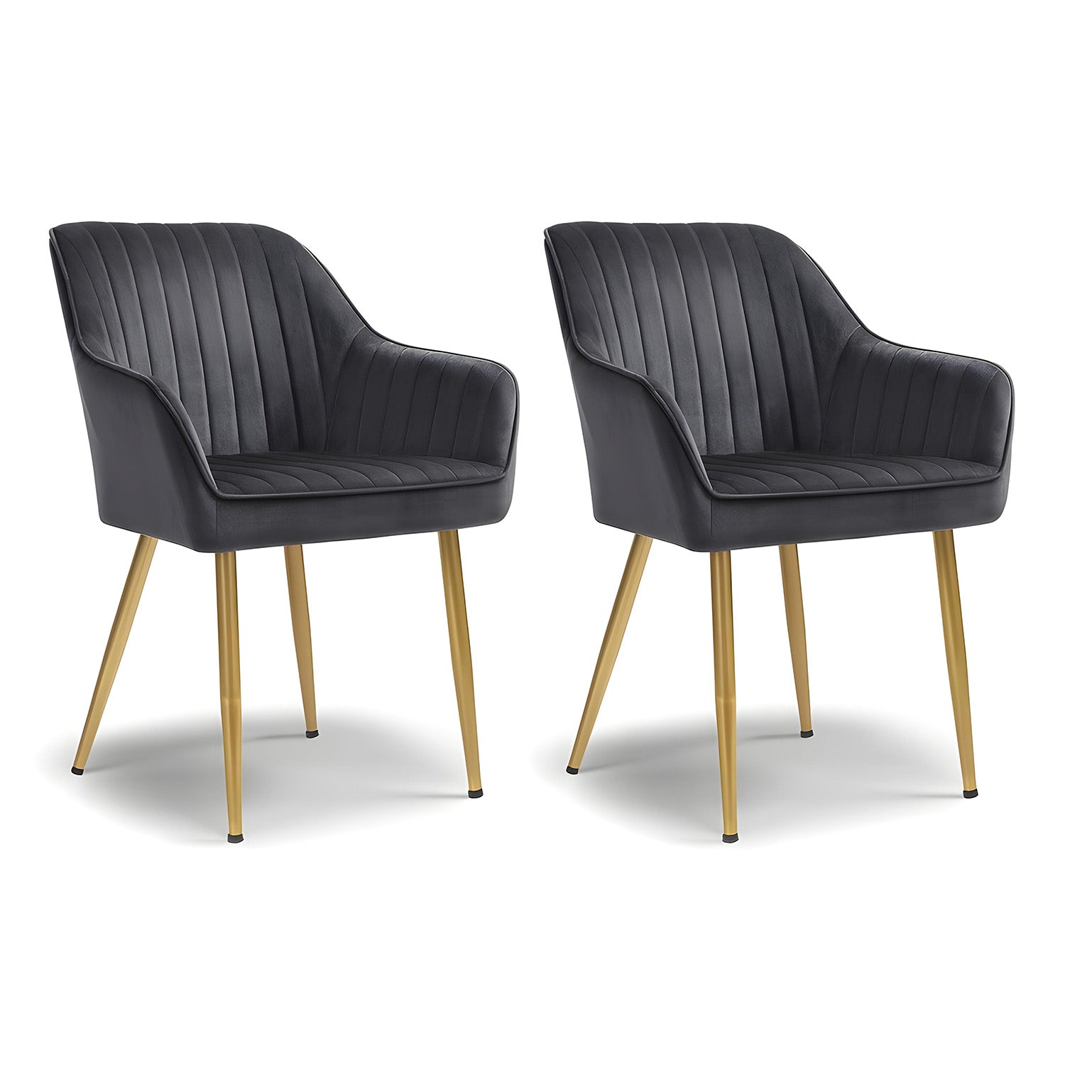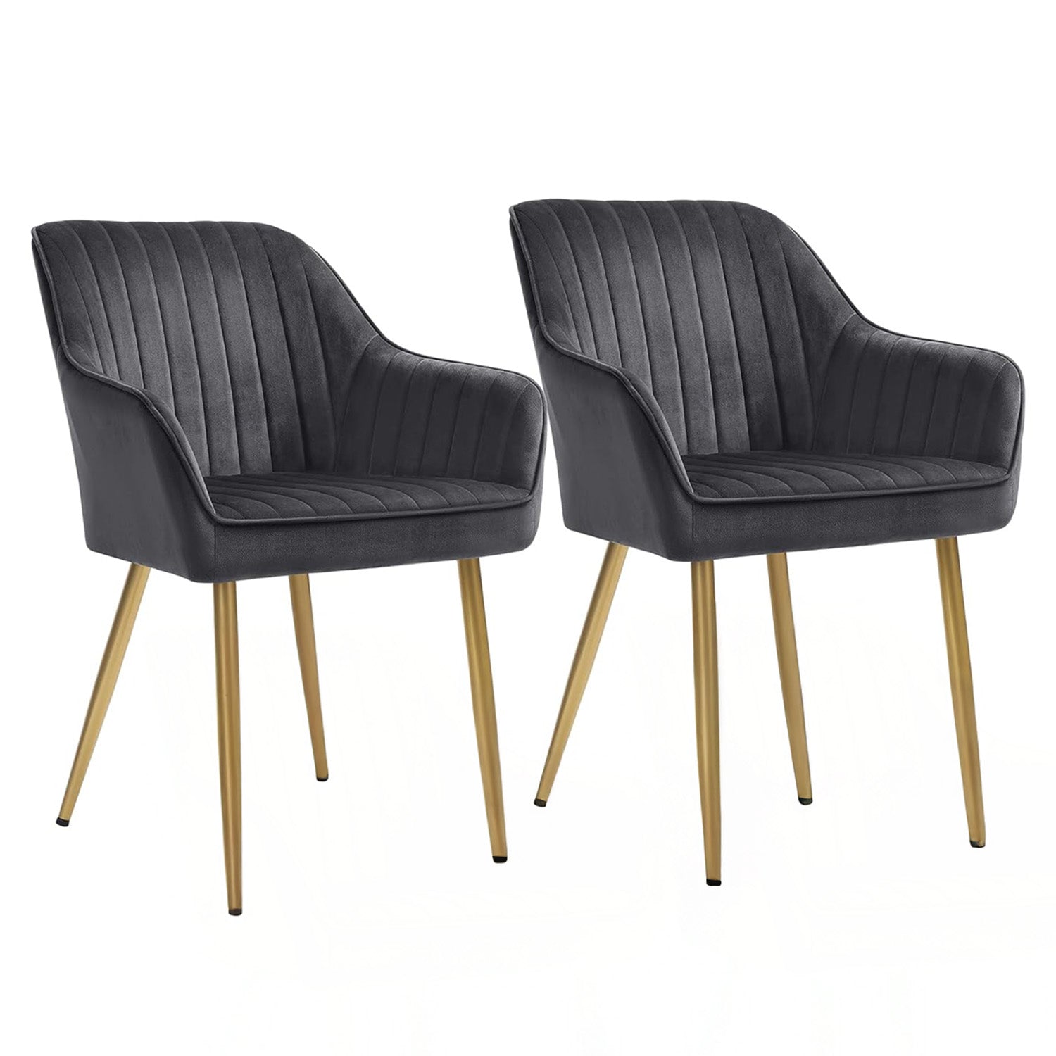 Set 2 Scaune Elindor® Ergonomice, Design Contemporan, Scaun cu Spatar si cu Manere, din Catifea cu Picioare Metalice Aurii, Potrivite pentru Living, Bucatarie, Birou, Dormitor, Latime Sezut 49 cm, 55.5 x 43 x 83 cm, Gri