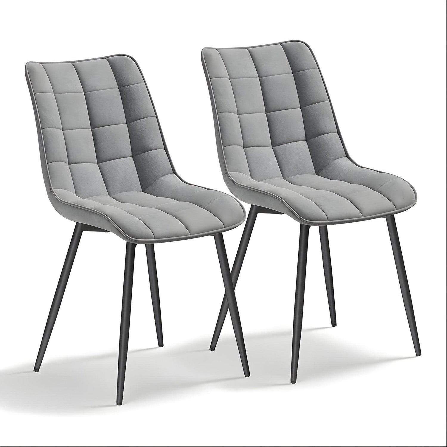 Set 2 Scaune Elindor® Ergonomice, Design Contemporan, Scaun cu Spatar si fara Manere, din Catifea cu Picioare Metalice Negre, Potrivite pentru Living, Bucatarie, Birou, Dormitor, Latime Sezut 46 cm, 85.5 x 45 x 42 cm, Gri Deschis