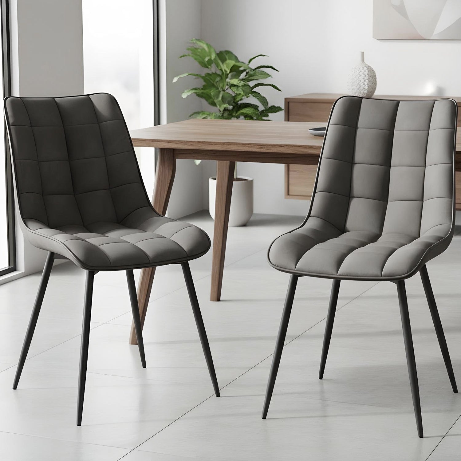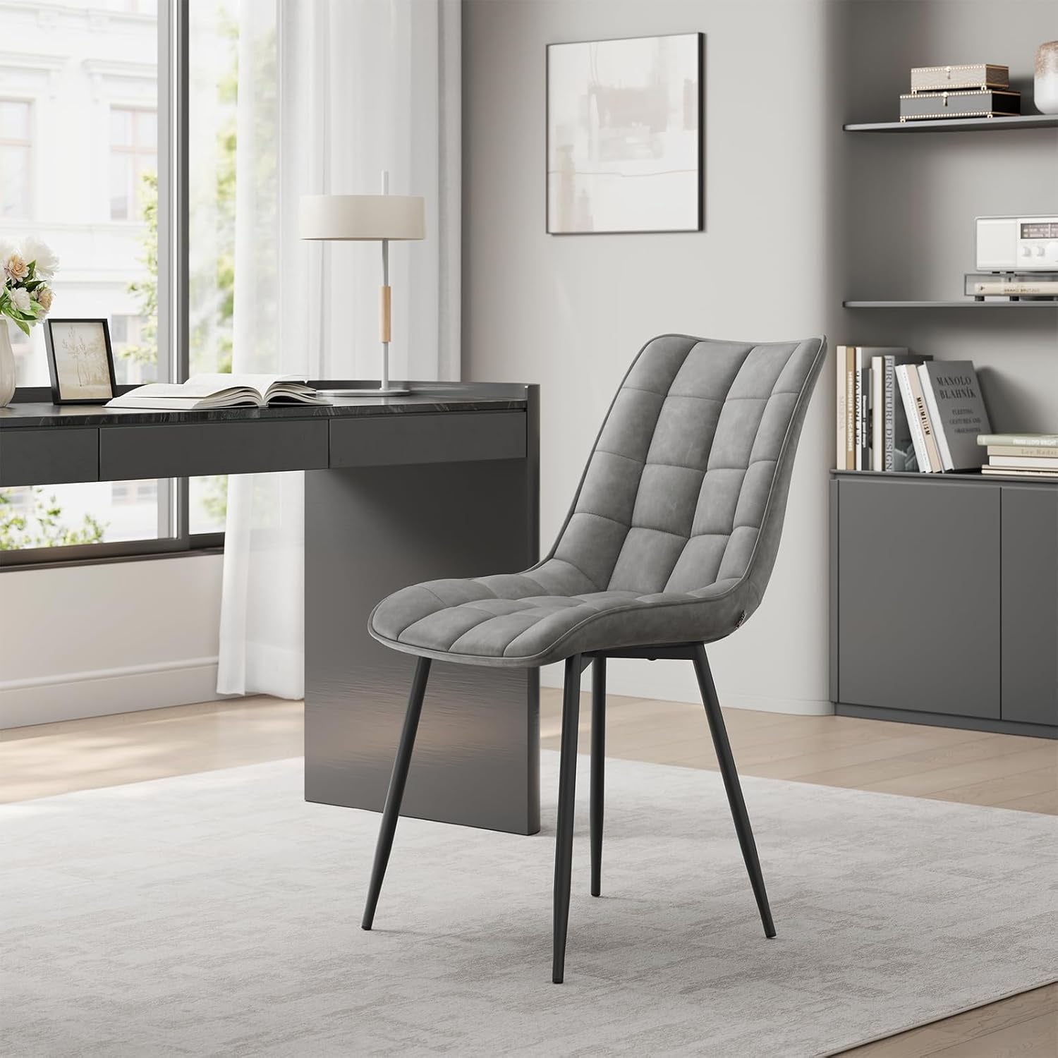 Set 2 Scaune Elindor® Ergonomice, Design Contemporan, Scaun cu Spatar si fara Manere, din Catifea cu Picioare Metalice Negre, Potrivite pentru Living, Bucatarie, Birou, Dormitor, Latime Sezut 46 cm, 85.5 x 45 x 42 cm, Gri