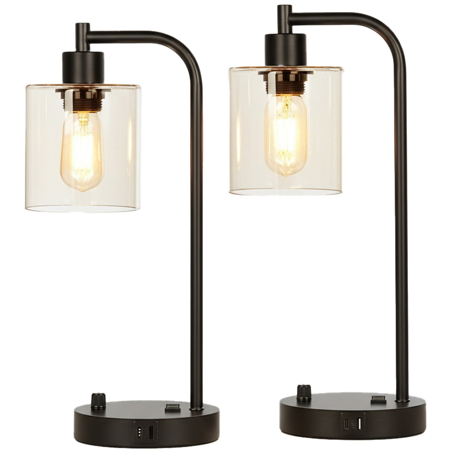 Set de 2 lămpi de masă industriale aurii cu port USB și reglaj continuu al luminii- BECUL NU ESTE INCLUS!