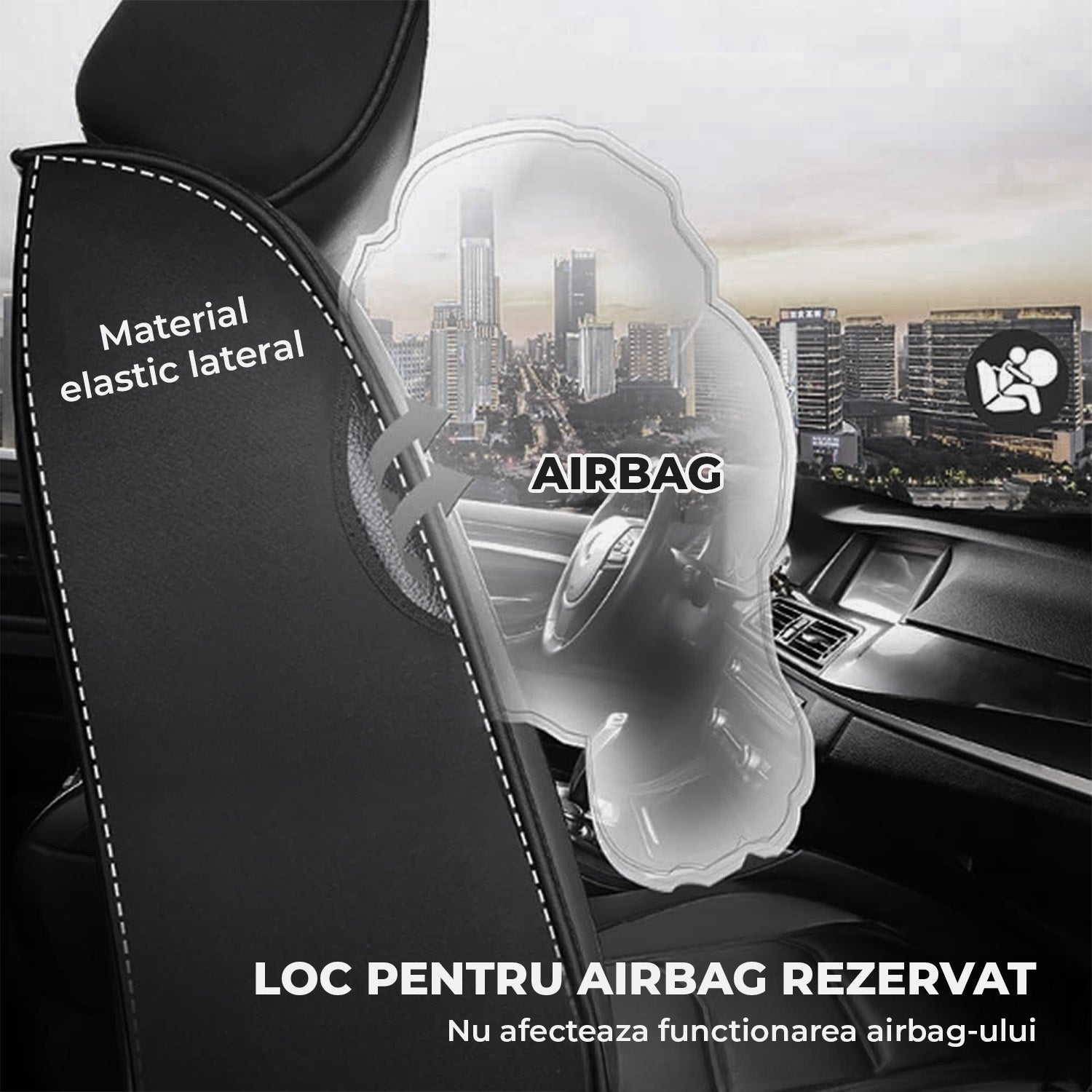 ✔️ Design sigur și modern: compatibilitate cu airbaguri, prindere velcro, antialunecare, potrivire personalizată.