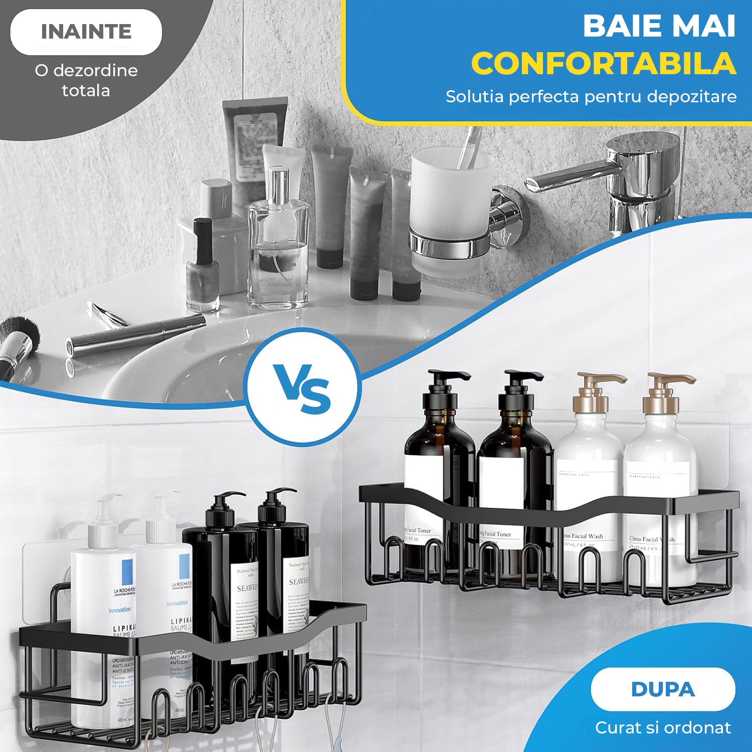 Fabricate din otel carbon, aceste rafturi baie sunt durabile, impermeabile, rezistente la rugina si zgarieturi. Designul gol permite scurgerea rapida a apei si ventilarea eficienta, mentinand produsele curate si uscate.