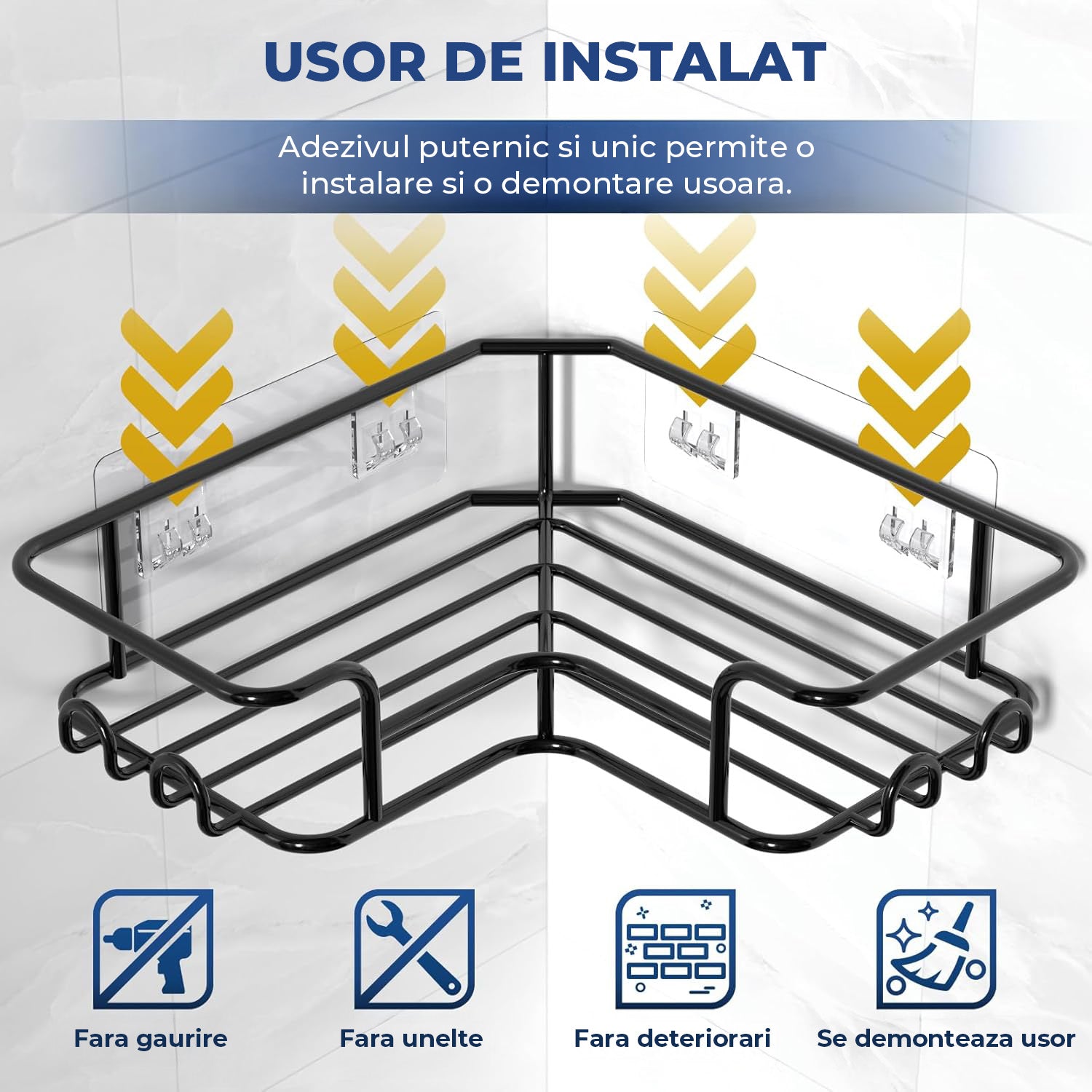 O baie ordonată și elegantă îți aduce mai mult confort și funcționalitate. Acest suport de duș pentru colț este soluția perfectă pentru a economisi spațiu și a păstra toate produsele de igienă la îndemână, fără a fi nevoie de găurire sau unelte.