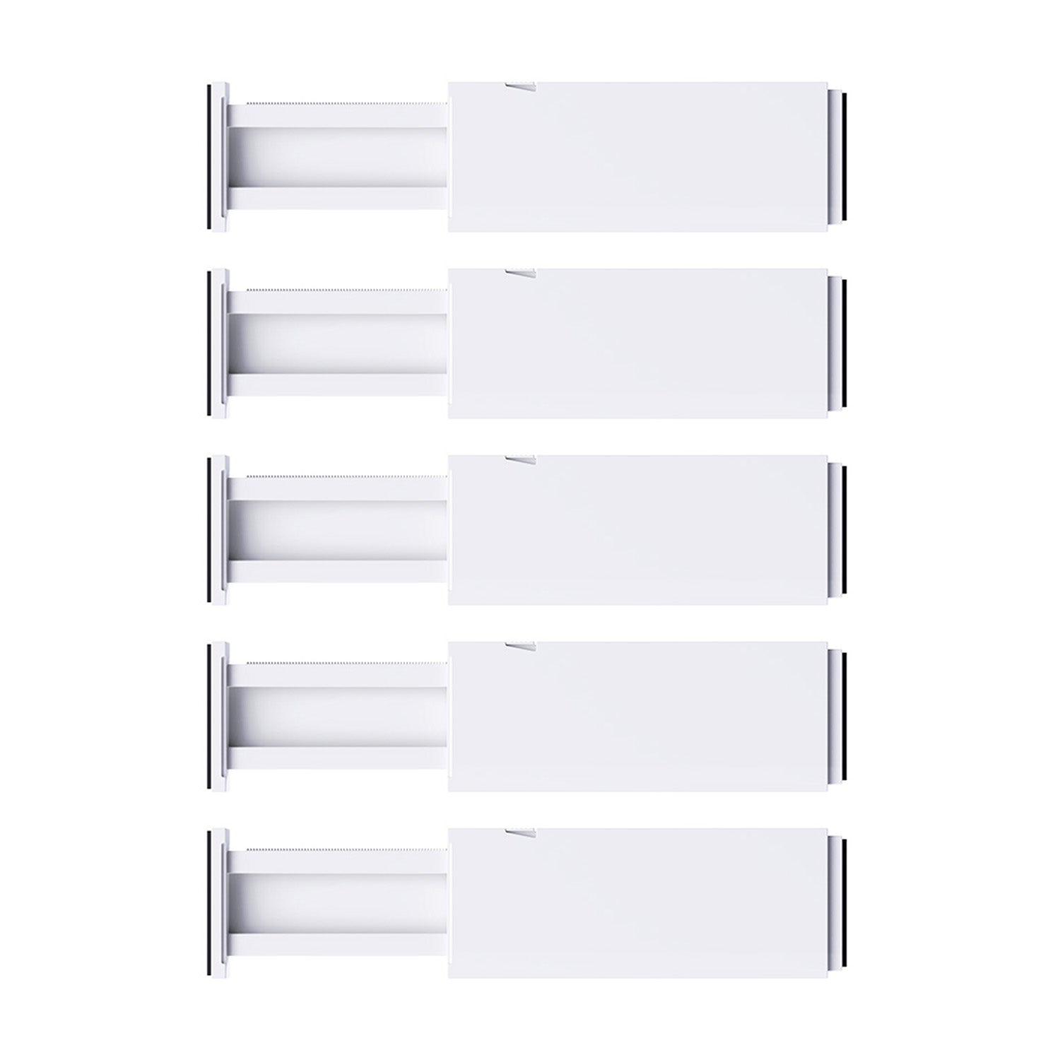 Set 5 Separatoare Extensibile Elindor® din Plastic pentru Sertar, Organizare Bucatarie, Birou, Dormitor, Baie, Organizatoare si Separatoare Sertare, Organizator Spatii Depozitare, Ajustabil si Extensibil de la 28 cm la 48 cm, Transparent