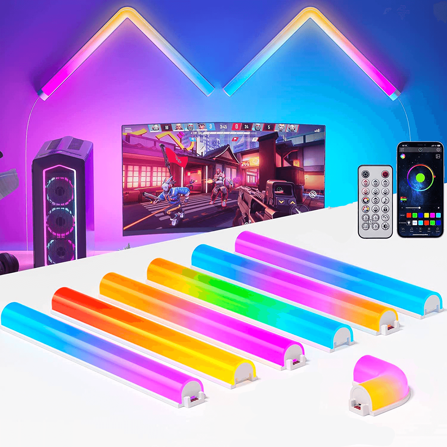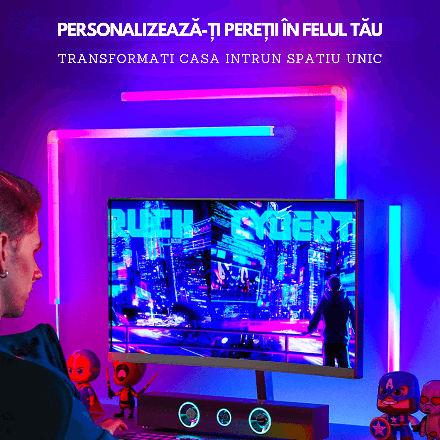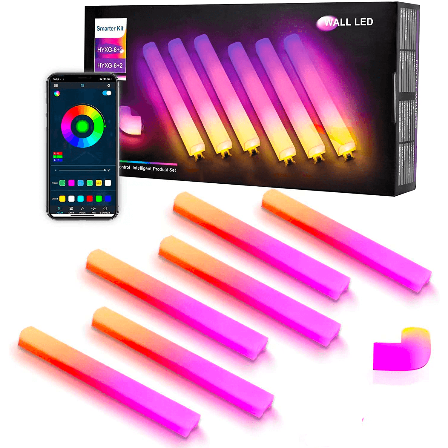 Set 6 buc bara LED RGBIC inteligent Elindor® Wall Light, Wi-fi, sincronizare muzica, lumina colorata, Google Assistant/alexa, 180 cm (6x30cm)