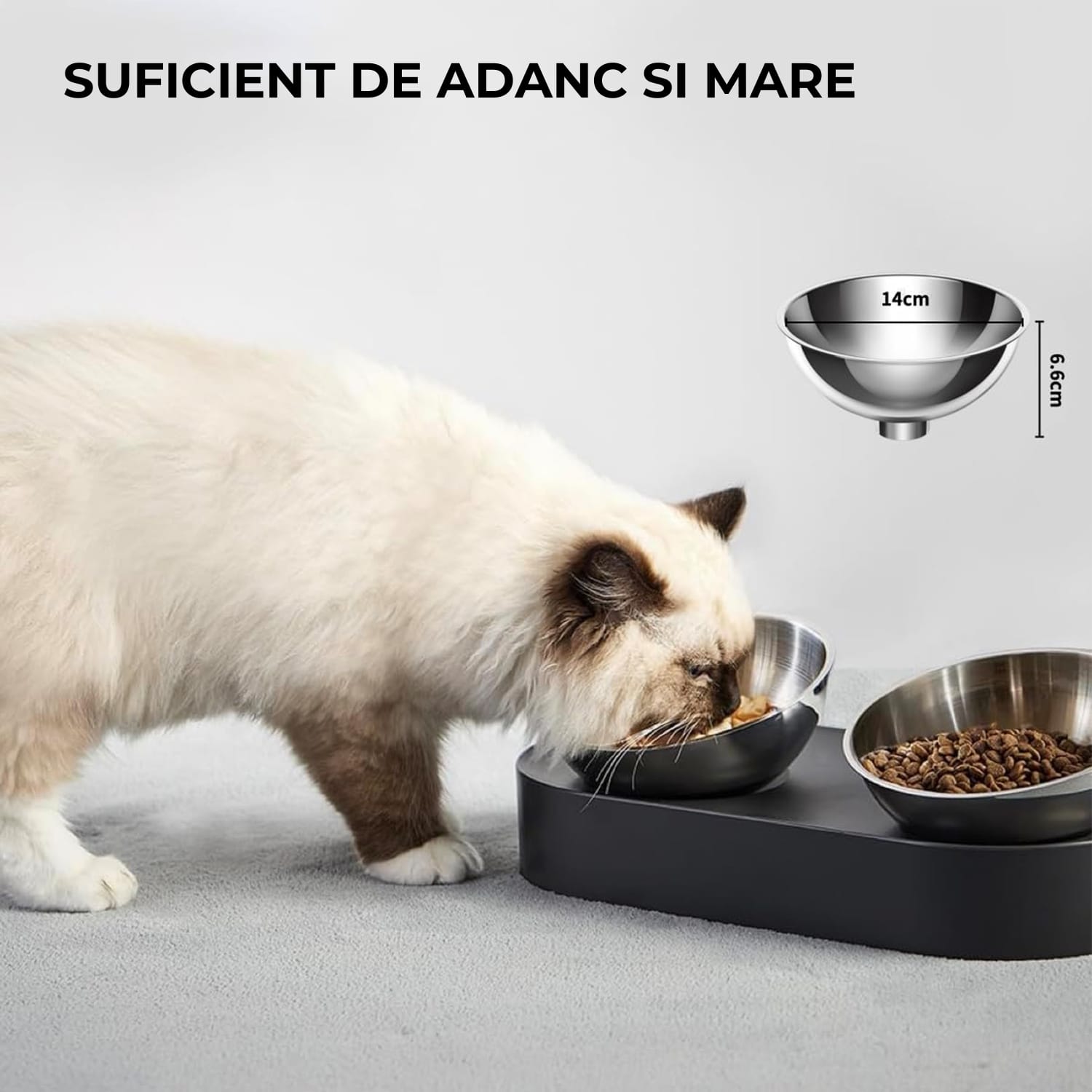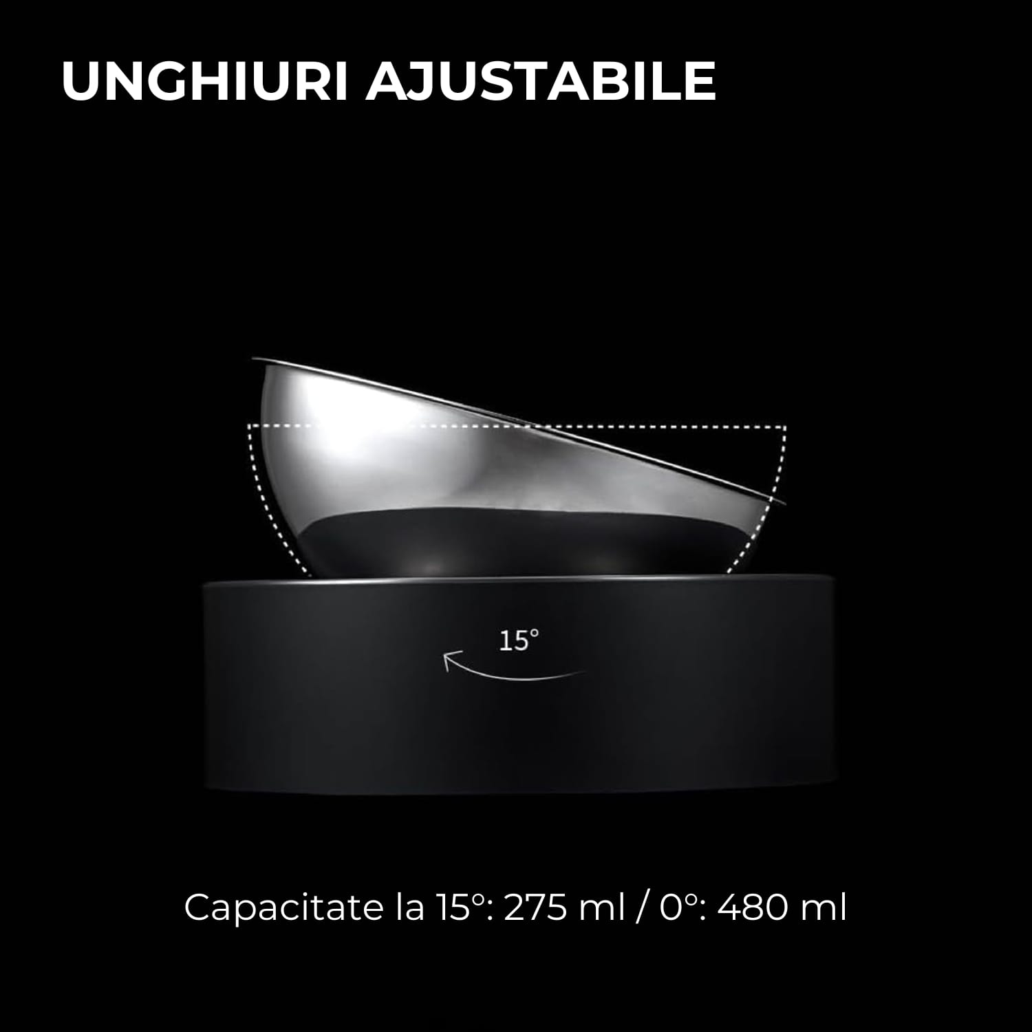 Bolurile inaltate si unghiul reglabil de 0°/15° sunt proiectate pentru a reduce efortul necesar animalelor in timpul hranirii. Inclinarea de 15° ajuta la prevenirea varsaturilor si la imbunatatirea digestiei, in special pentru pisici. Designul ergonomic asigura o pozitie confortabila pentru alimentare, potrivita atat pentru pisici, cat si pentru caini de talie mica.