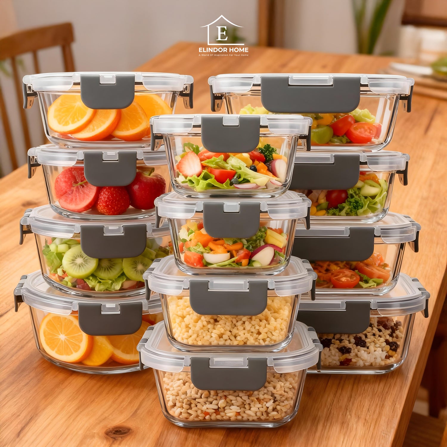 Organizeaza-ti bucataria si pastreaza prospetimea alimentelor cu setul de 24 recipiente din sticla Elindor®, perfect pentru depozitare, meal prep sau transport. Fabricate din sticla borosilicata rezistenta la temperaturi inalte, aceste caserole sunt durabile, igienice si potrivite pentru orice tip de aliment.
