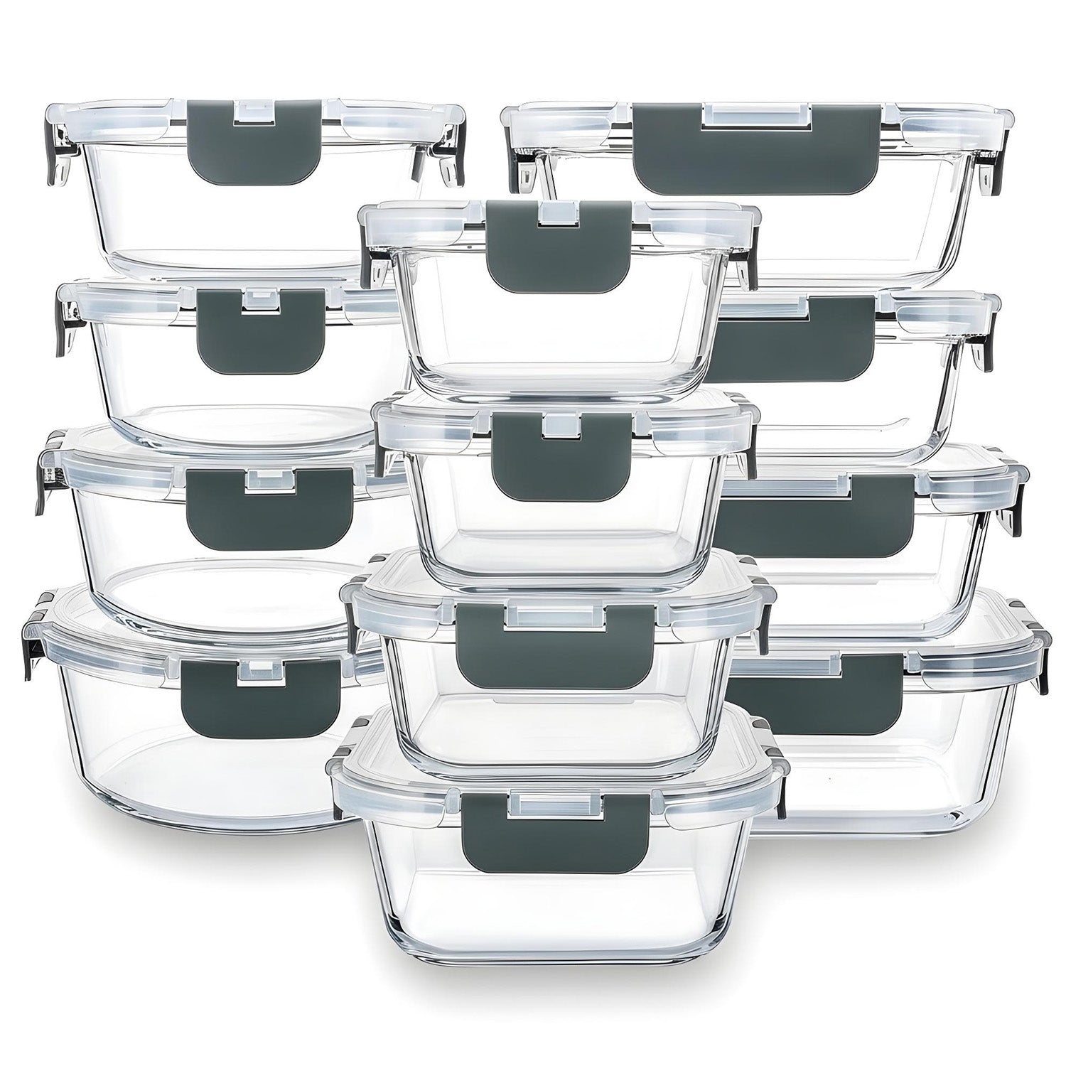 Set complet si versatil: include 12 recipiente din sticla si 12 capace etanse, ideale pentru depozitarea mancarii gatite, gustarilor sau preparatelor pentru pranz.