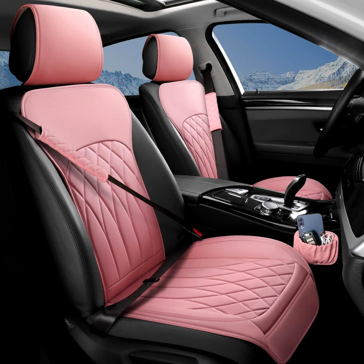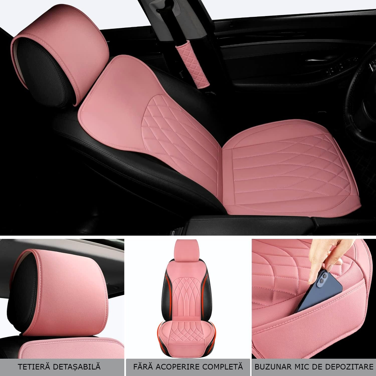 Set de 2 huse impermeabile pentru scaune auto, cu buzunar de depozitare si pernite pentru centura de siguranta, Roz