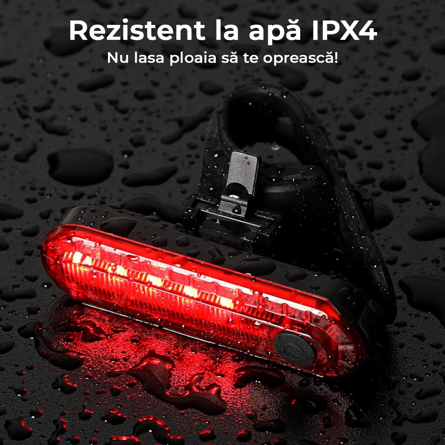 Usor de instalat: Cu un buton de demontare cu o singura atingere, trebuie doar sa glisati lumina pe si de pe suport fara a indeparta intregul suport de montare. Cureaua de montare din silicon pentru lumina LED este proiectata cu patru deschideri care se potrivesc strans pe cele mai multe dimensiuni de ghidon si sa.