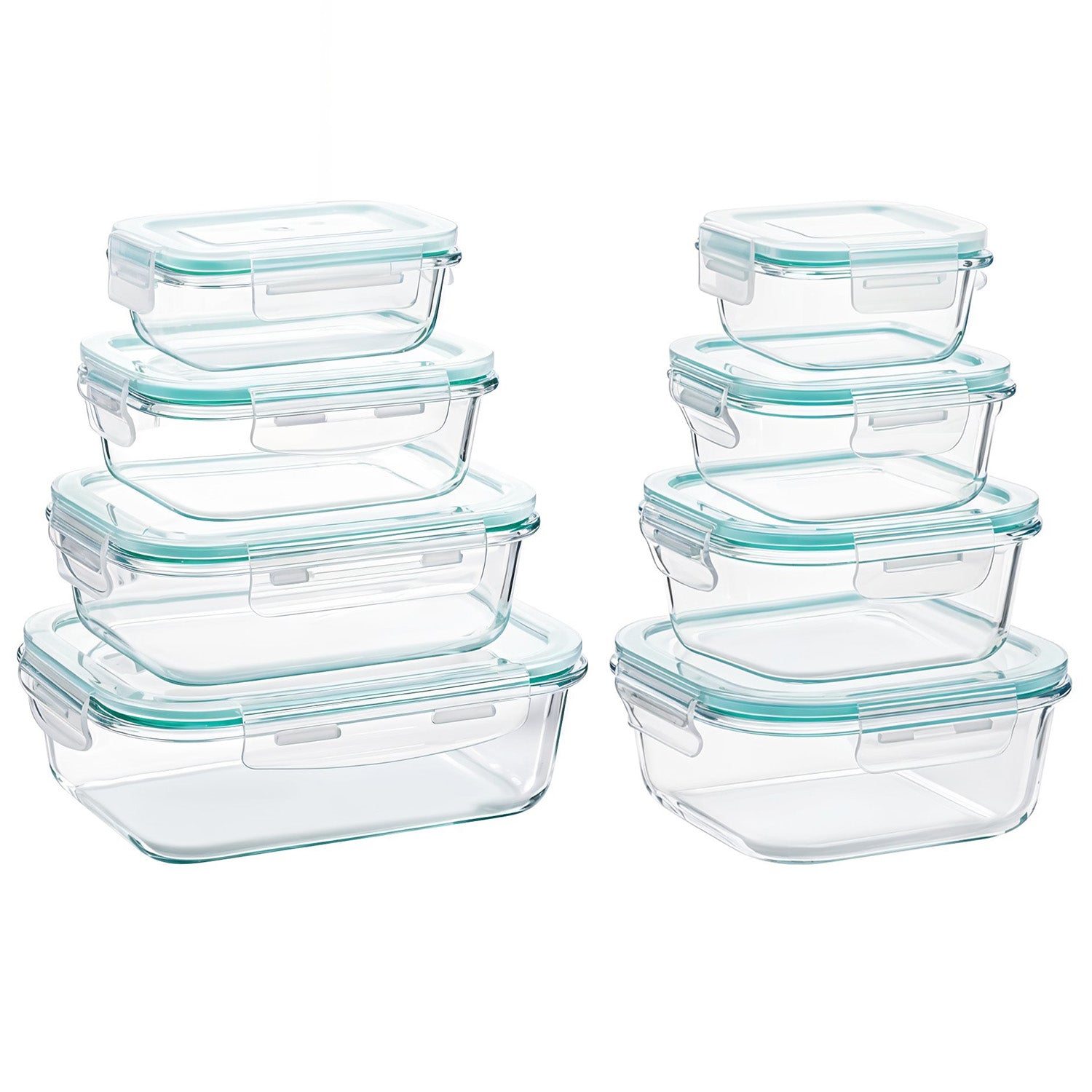 Set 8 Recipiente Sticla Elindor® – Cutii Depozitare Alimente cu Capace Etanse, Sticla Borosilicata, Fara BPA, pentru Cuptor, Congelator si Cuptor cu Microunde, Verde