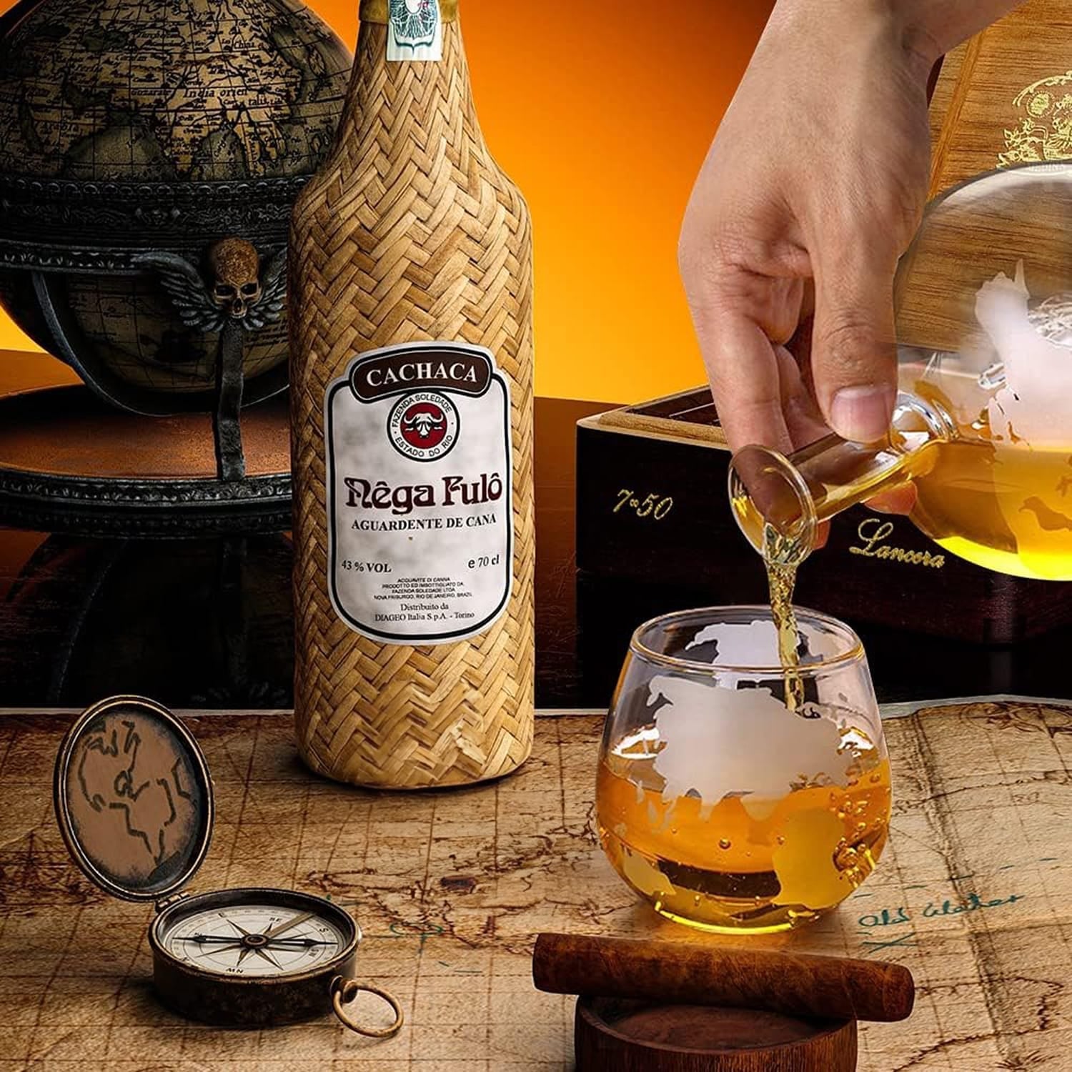 Decantor tip Glob: Roteste decantorul pe axa sa si admira nava antica cu detalii artizanale si harta lumii frumos gravata pe paharele de whiskey. Un decantor de whisky clasic, o capodopera decorativa suflata manual de catre un mester priceput.