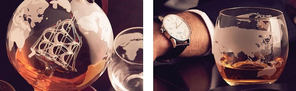 Rafinat și elegant - decantorul pentru whiskey realizat manual prezintă un glob gravat și o navă antică în interior, care cu siguranță îți va crea o experiență plăcută cu băuturile preferate și va crea o impresie puternică.