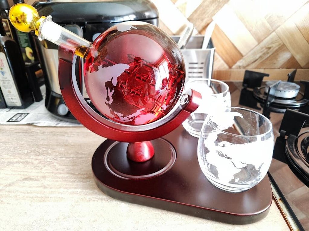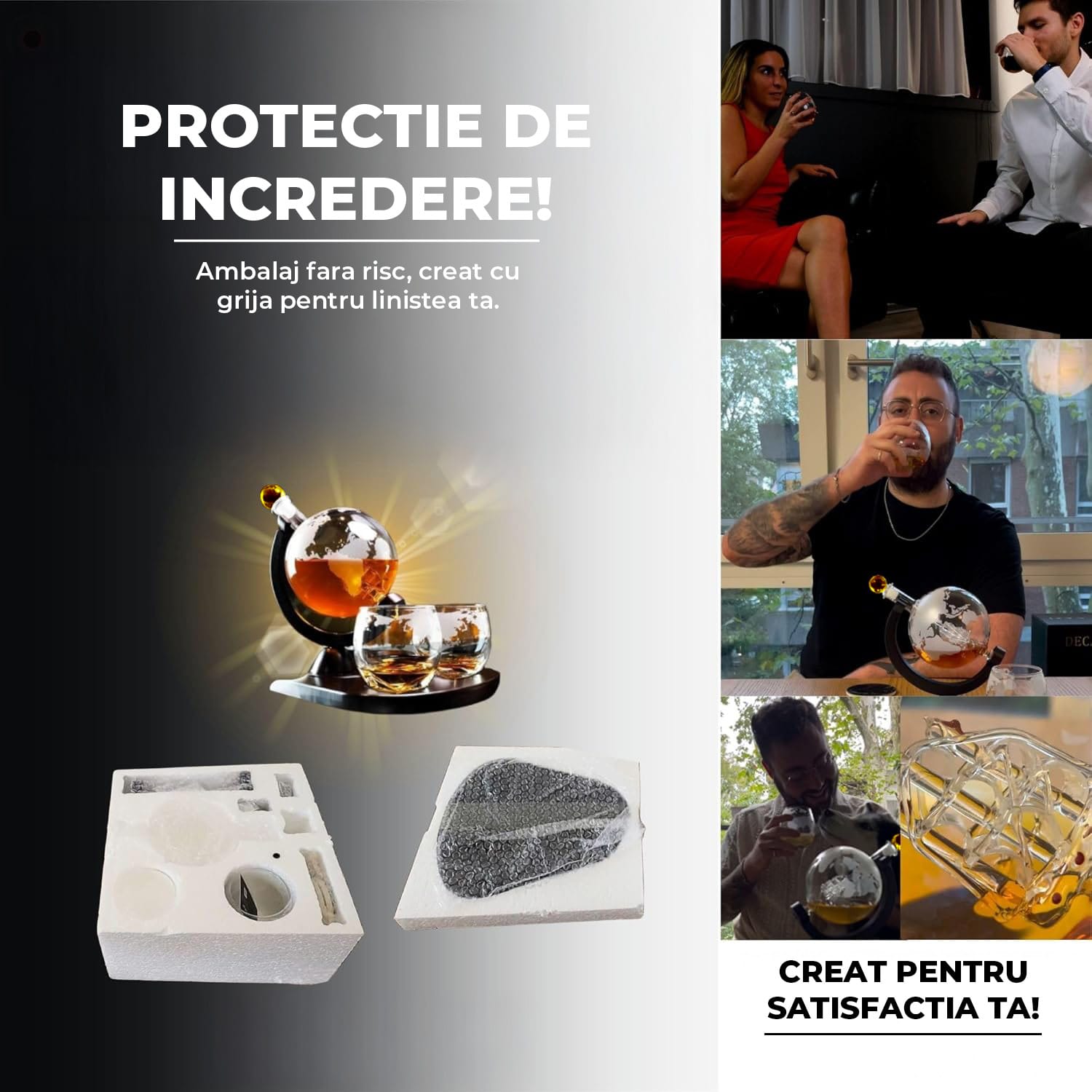 Design Elegant și Unic: Decantorul cu design în formă de glob, realizat manual, aduce o notă sofisticată oricărui bar sau sufragerie. Gravura detaliată și structura robustă transformă acest set într-o adevărată operă de artă.