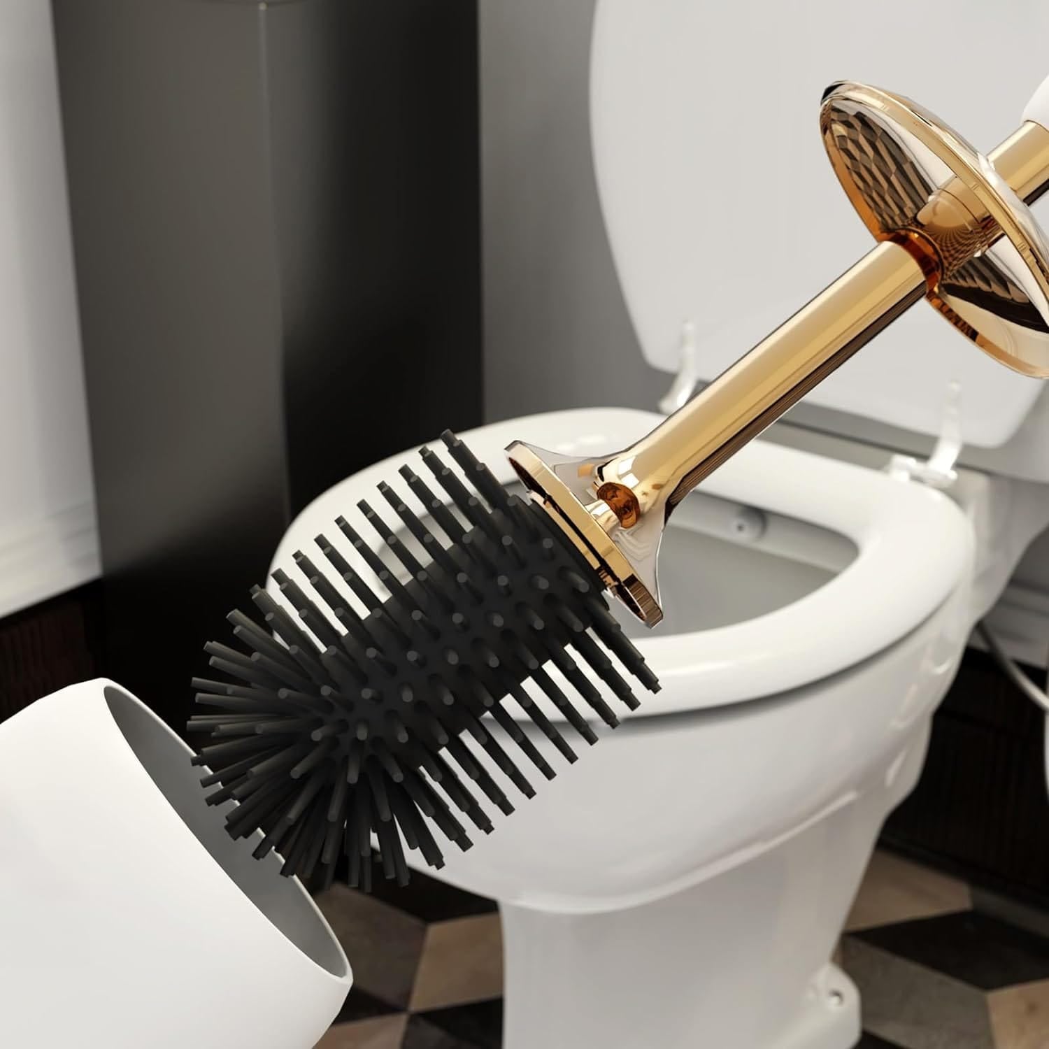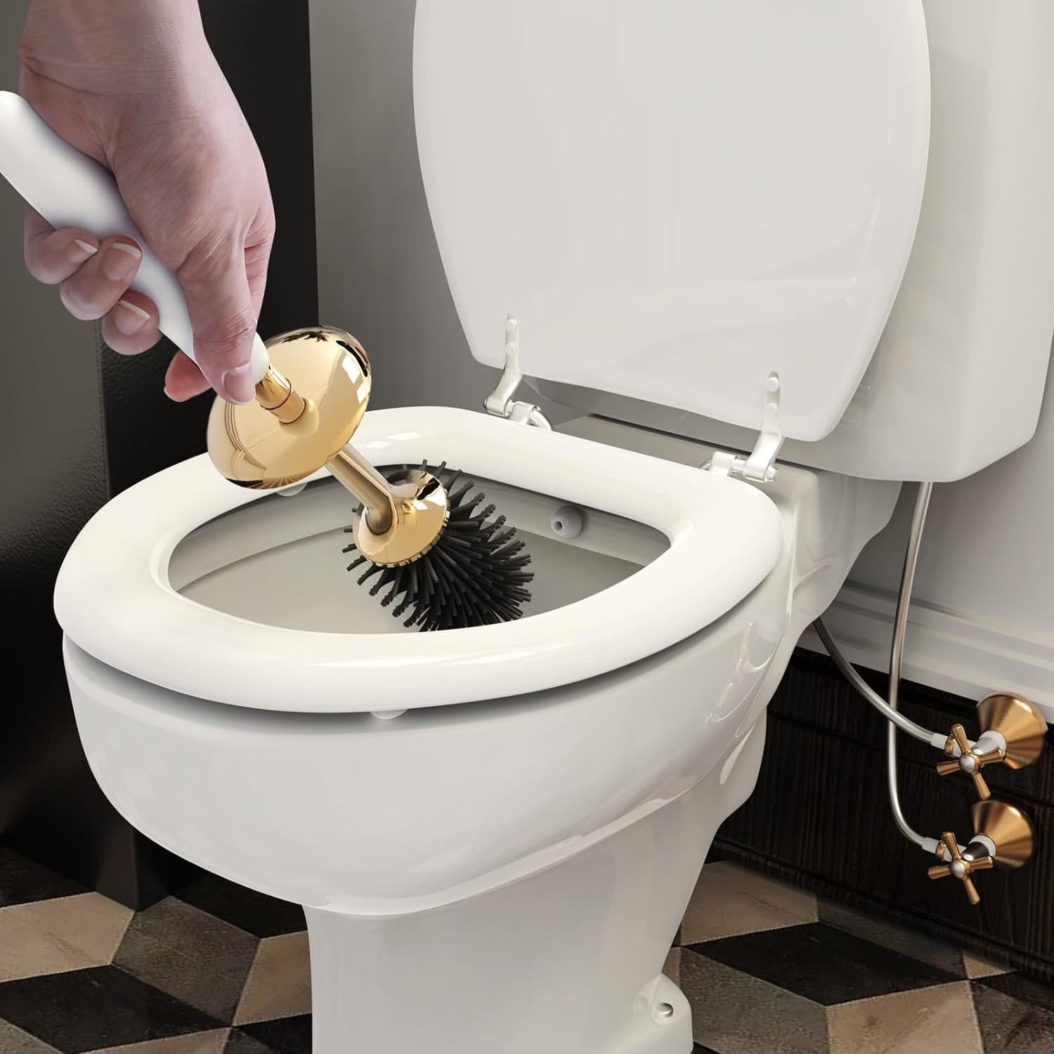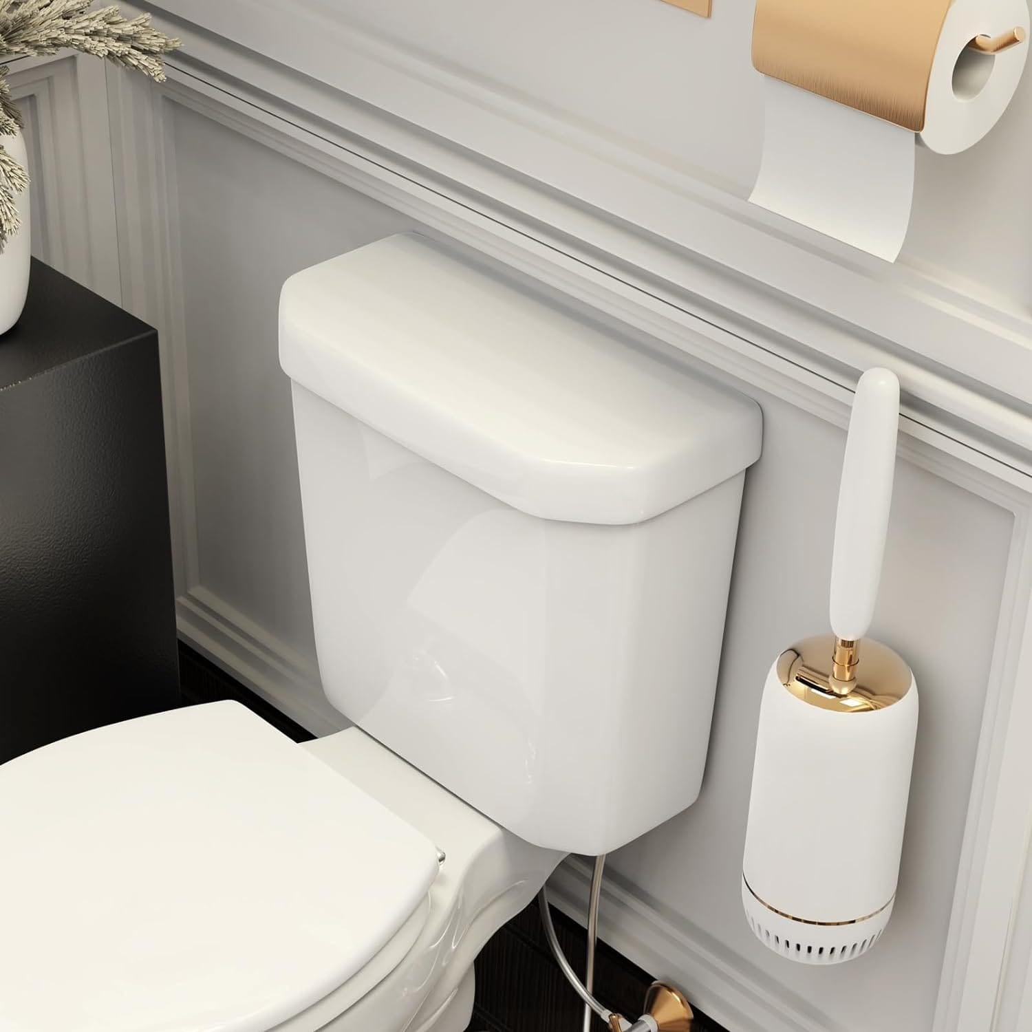 Set Perie Toaletă Silicon 360° Premium, Alb/Auriu, Prindere pe Perete