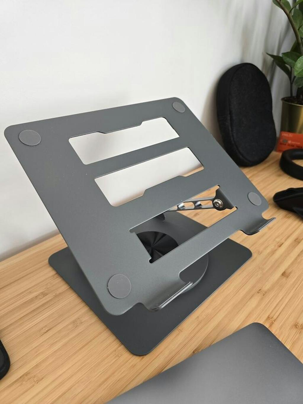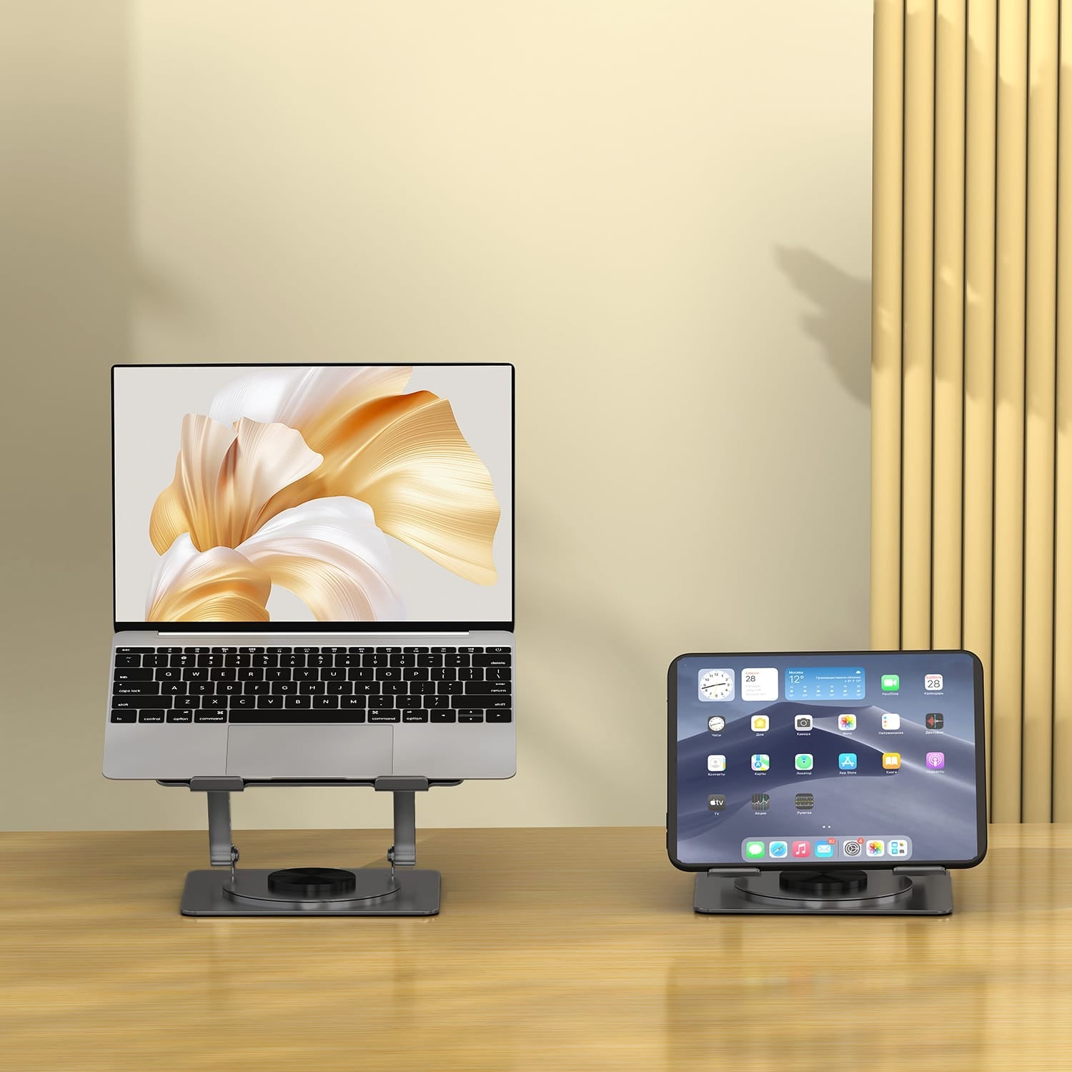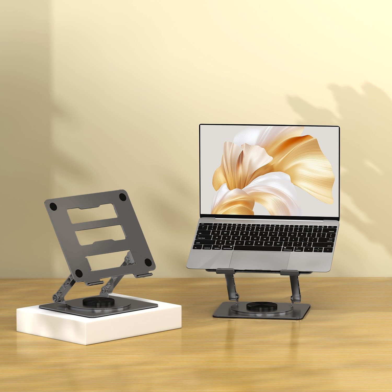 Suport laptop ergonomic, portabil, reglabil, pentru laptop si tableta, cu baza rotativa 360°, universal, pliabil, silicon non alunecos, compatibil cu toate laptopurile 10-17'', Negru D031