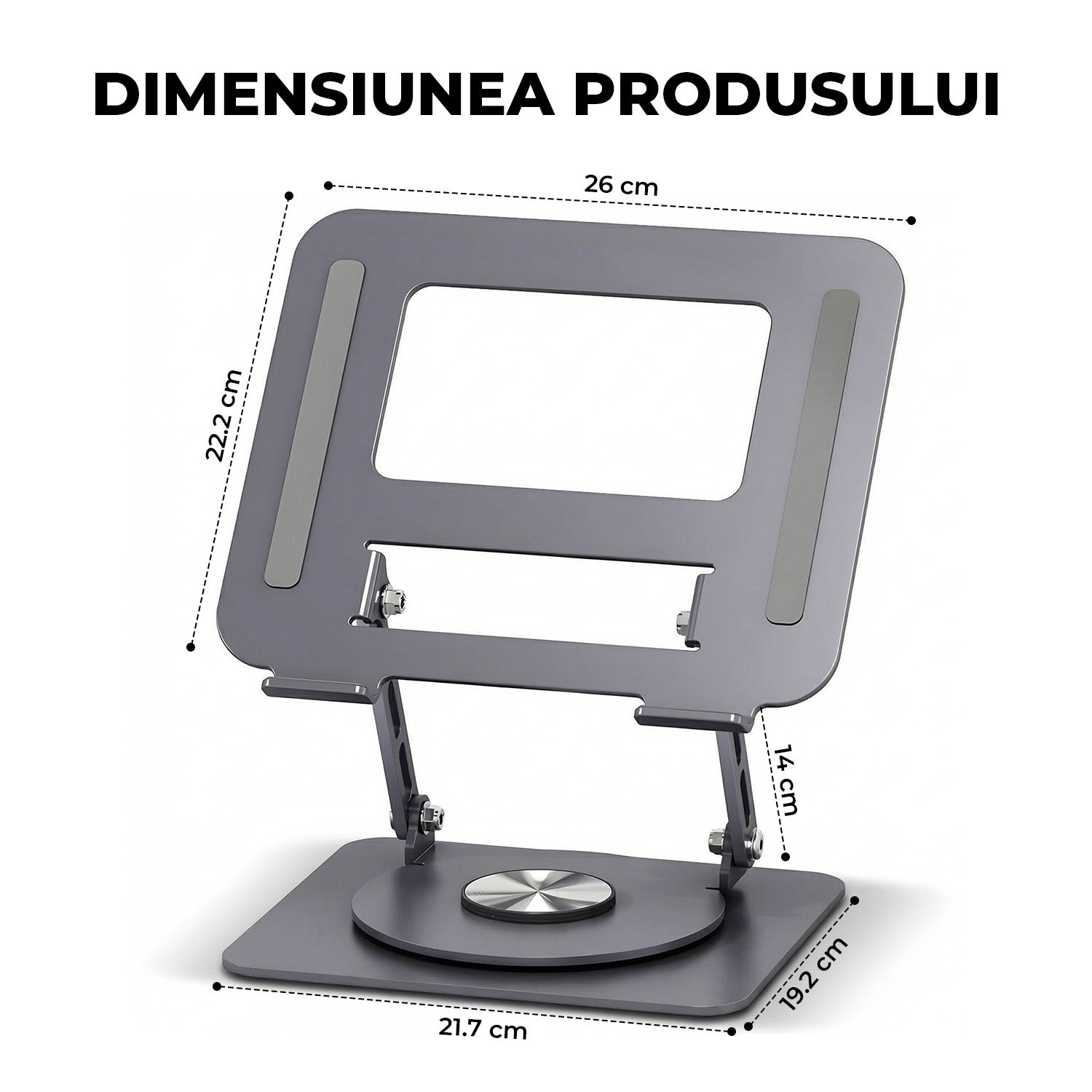 • 1x Suport Laptop Ergonomic Elindor® Gri cu baza rotativa 360°