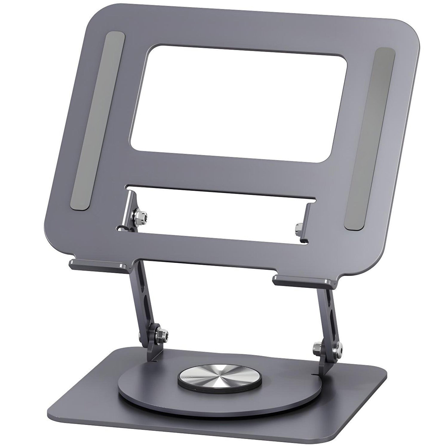 Suport Laptop si Tableta Elindor®, Masa Ergonomica Reglabila si Portabila, Stand Universal cu Baza Rotativa 360°, Antiderapanta, Compatibil 10–15.5 Inch, Ideal pentru Birou, Acasa si Calatorii, Gri