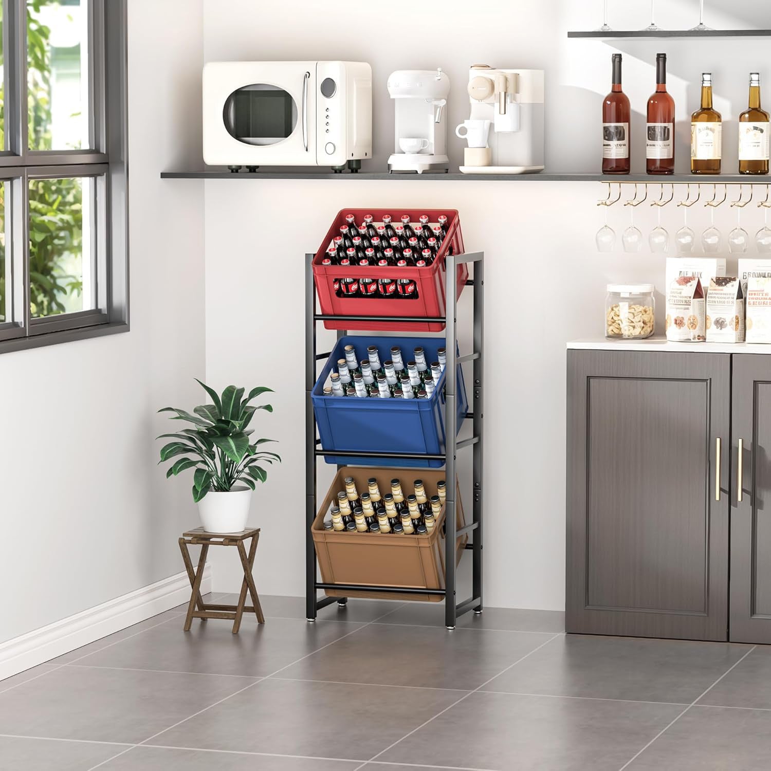 suport navete bauturi, raft navete bere, suport navete apa, raft metalic pentru navete, organizator bauturi vertical, suport navete 3 niveluri