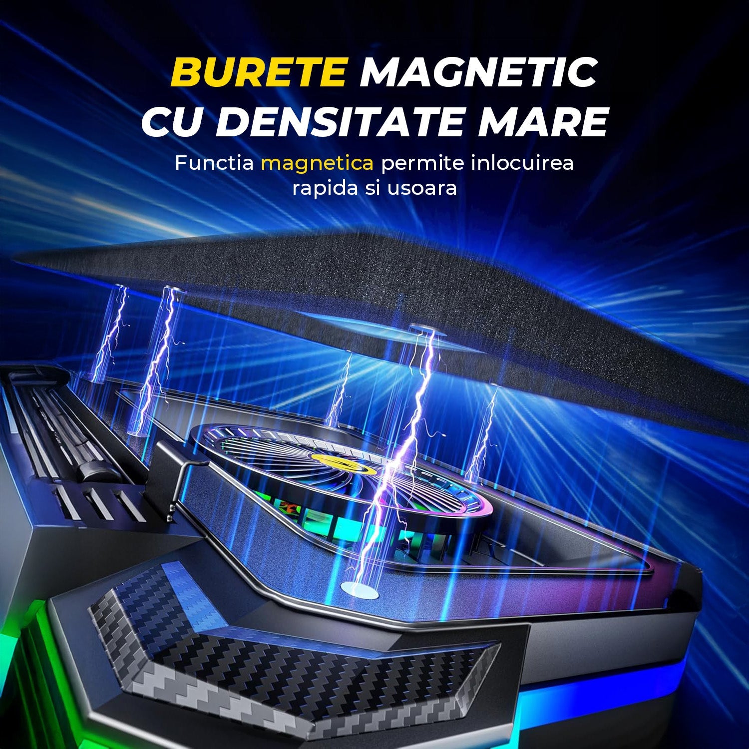 Platforma de racire are 7 pozitii reglabile in inaltime, concepute pentru a imbunatati postura si confortul in timpul utilizarii indelungate. Ajuta la reducerea tensiunii din zona spatelui si a gatului in timpul sesiunilor lungi de gaming sau lucru.