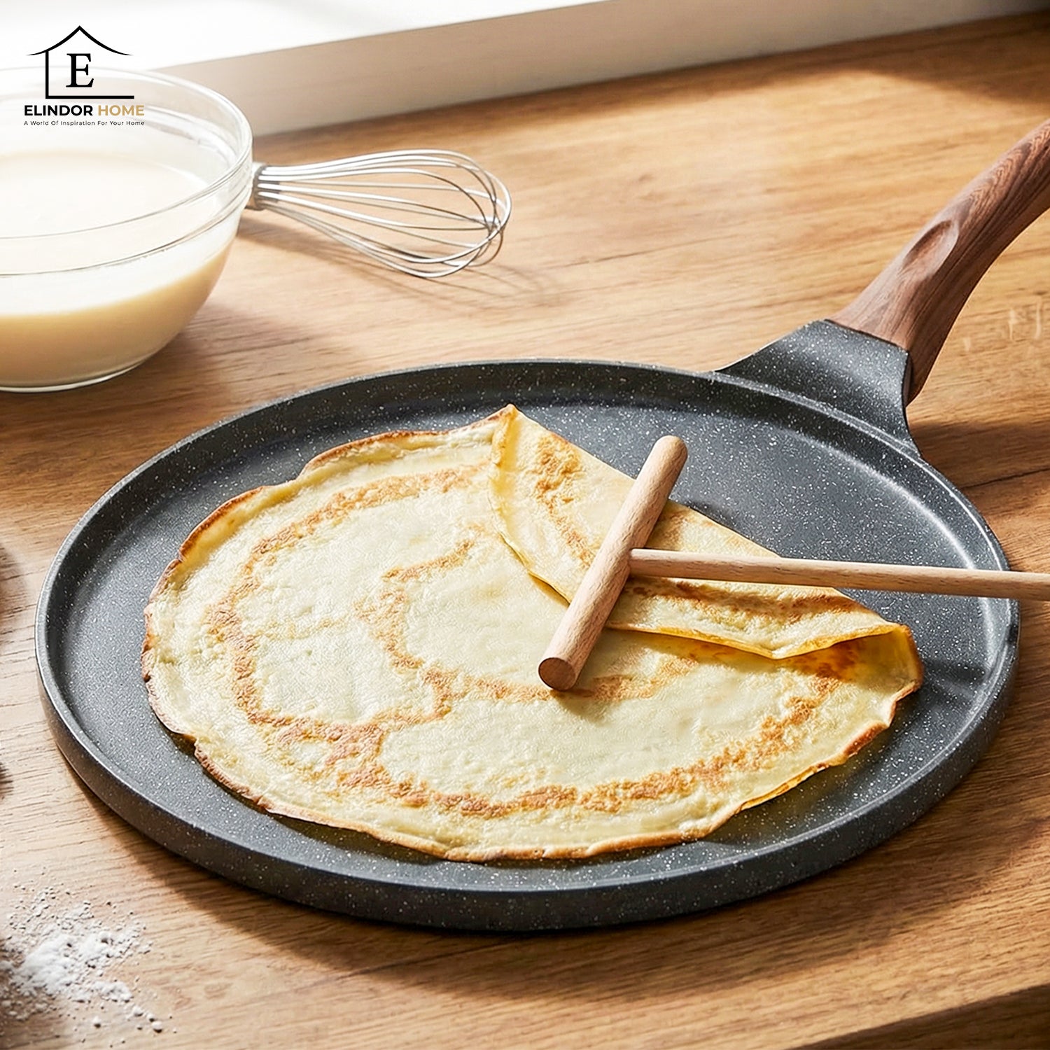 Aceasta Tigaie Clatite Elindor® 26 cm combina distributia uniforma a caldurii, invelisul antiaderent rezistent si compatibilitatea cu toate tipurile de plite, fiind alegerea practica pentru preparate gatite rapid si uniform in fiecare zi.