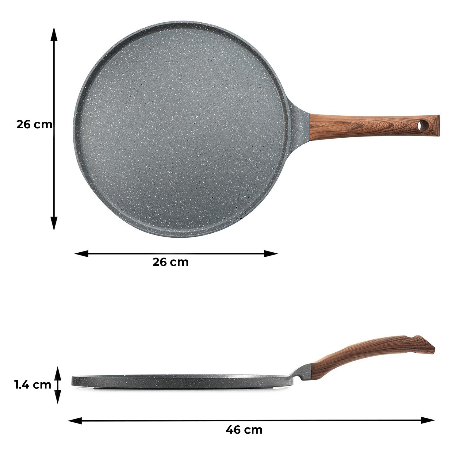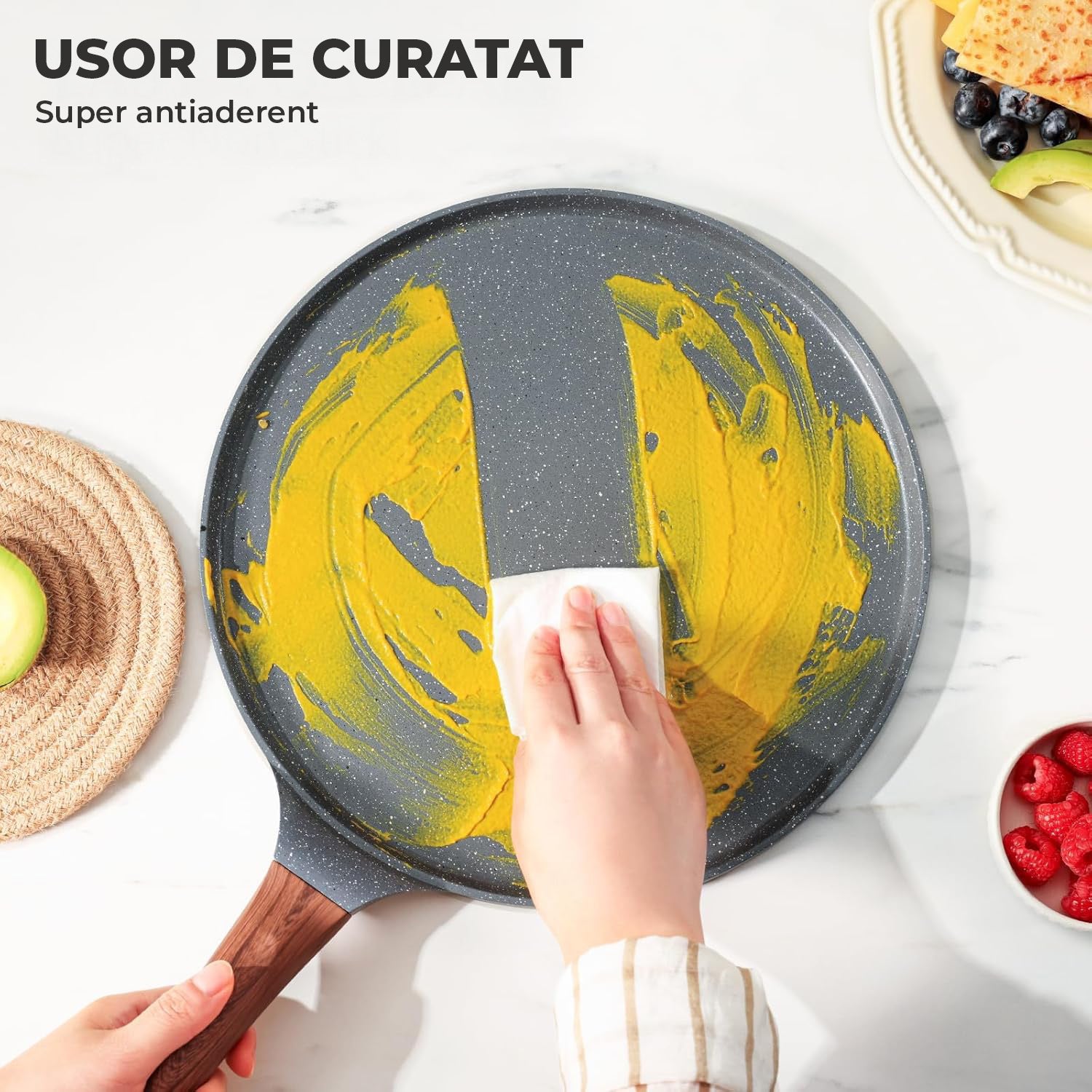 tigaie clatite 26 cm, tigaie pancake, tigaie omleta, tigaie inductie, tigaie antiaderenta granit, tigaie plata pentru tortilla, tigaie fara pfoa