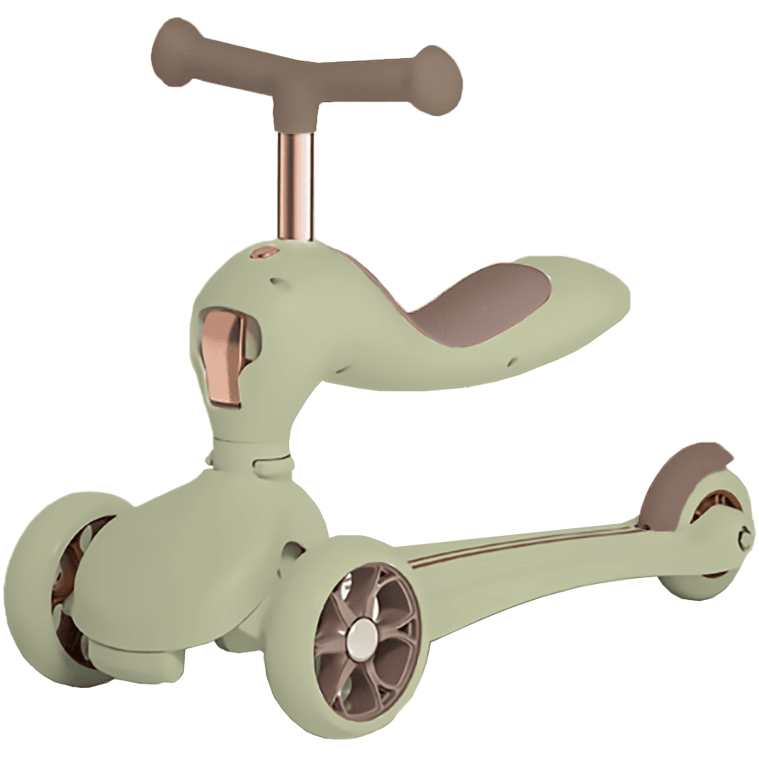Trotineta copii cu sezut, transformabila 2 in 1 cu roti luminoase, 1-5 ani, suport picioare, frana progresiva, Verde