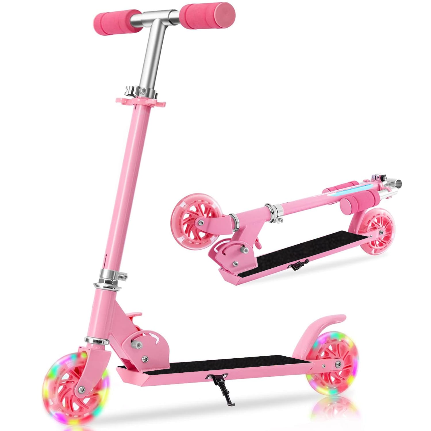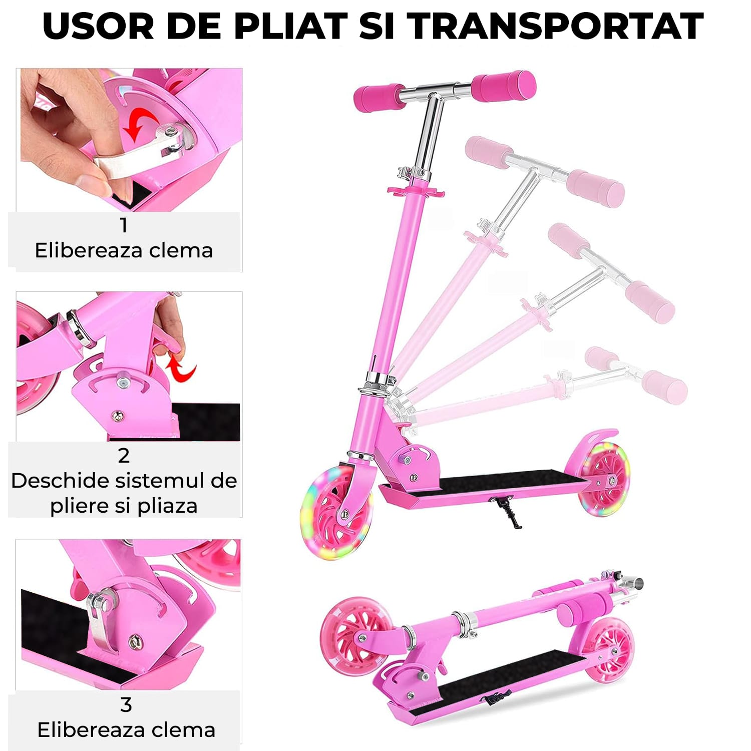 Trotinetă Elindor® Pliabilă cu Ghidon Ajustabil, Roți LED, Roz