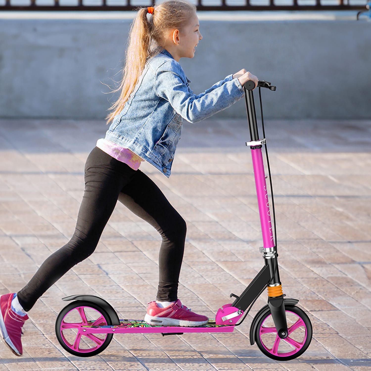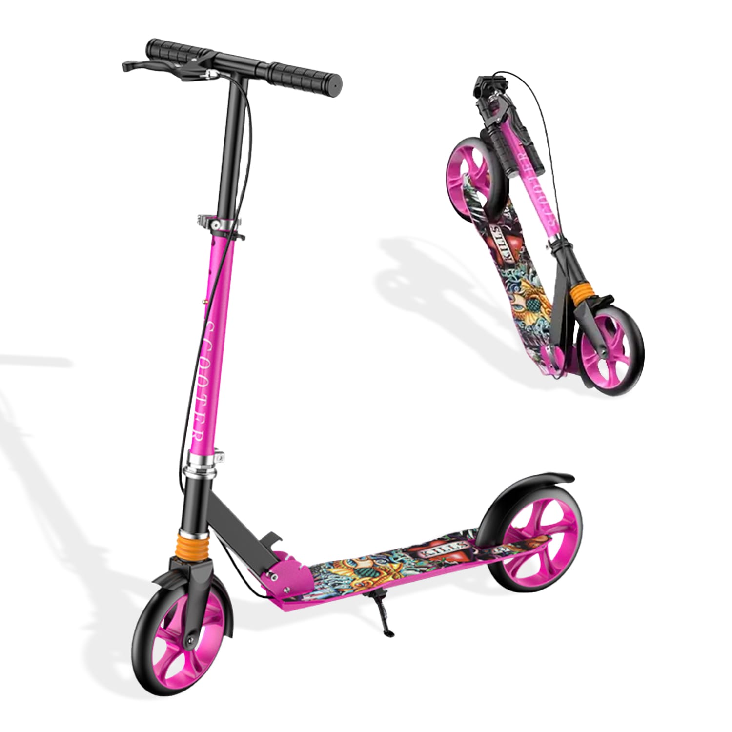 Trotinetă Pliabilă cu Amortizor Elindor®, Frână Spate și Platformă Antiderapantă, Roz
