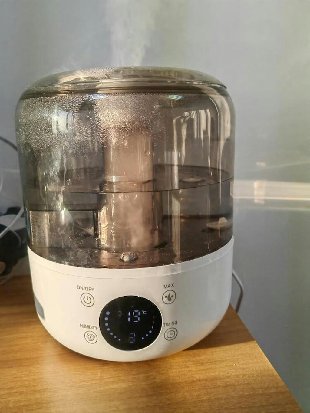 Abur Puternic: Umidificatorul este echipat cu un sistem imbunatatit cu doua ventilatoare pentru a mari si extinde acoperirea aburului. Cea mai mare iesire de abur poate ajunge la 290ml/h, crescand cu usurinta umiditatea cu 10% in doar 20 de minute. Reglati rapid umiditatea in intreaga camera pentru a va elibera de congestie, tuse, simptome asemanatoare racelii, alergii, piele uscata si probleme sinusale.