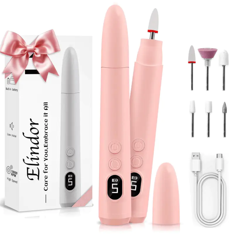 Freza unghii profesională Elindor, în nuanță de mov sofisticat, oferă 20.000 RPM și funcționează wireless. Include 11 capete versatile și 30 de benzi de șlefuire, cu un design ergonomic și portabil, asigurând o experiență de manichiură și pedichiură de excepție.
